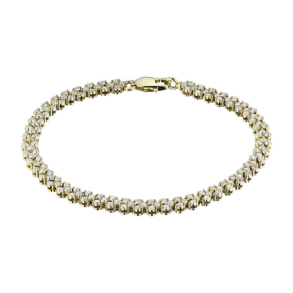 14K Yellow Gold Bracelet with 151 Round-Cut Lab-Created Diamonds 2.93 CT.TW - exquisite jewelry for a stylish look. Gently demonstrates your status, wealth and good taste. Preserves its radiance for a long time and is not afraid of corrosion. Noble shine of the precious metal and the luxurious sparkle of dia-monds will not stay unnoticed. This is a great addition to your business suit or an evening dress.
