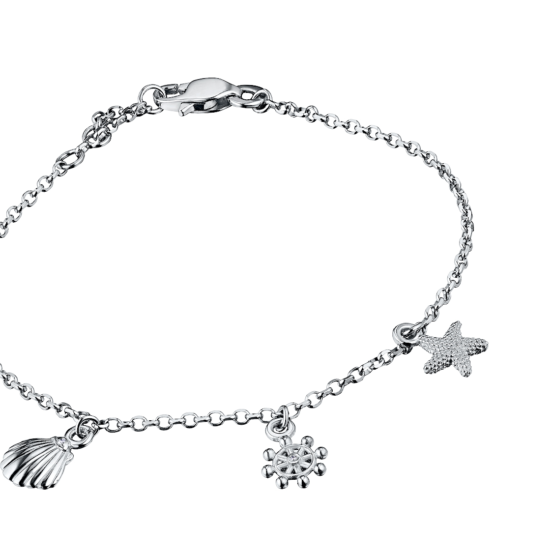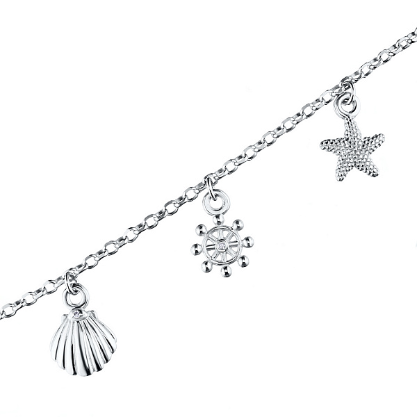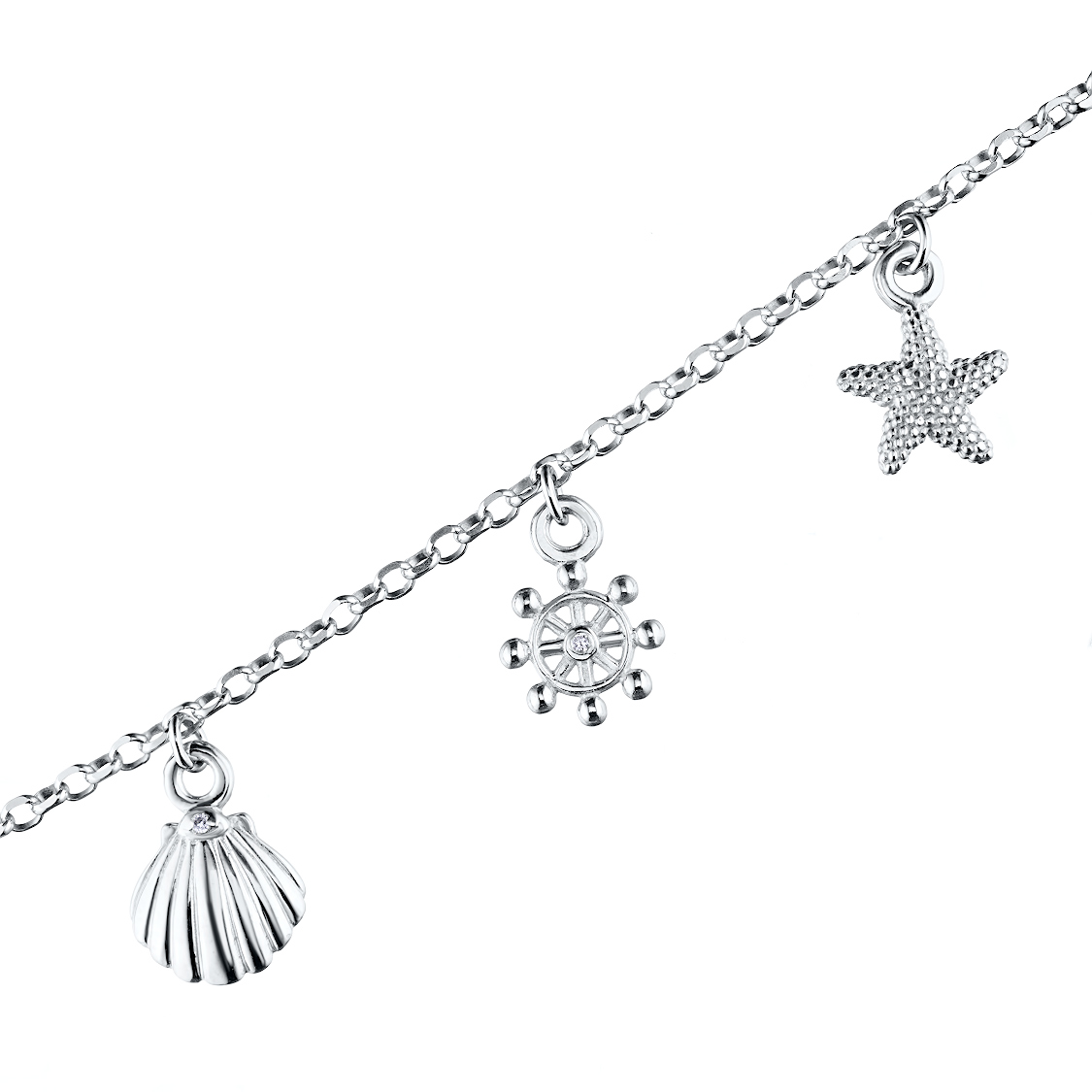Sterling Silver Bracelet with 2 Round-Cut Diamonds 0.01 CT.TW - exquisite jewelry for a stylish look. Gently demonstrates your status, wealth and good taste. Preserves its radiance for a long time and is not afraid of corrosion. Noble shine of the precious metal and the luxurious sparkle of dia-monds will not stay unnoticed. This is a great addition to your business suit or an evening dress.