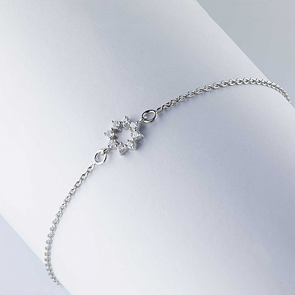 Sterling Silver Bracelet with 8 Round-Cut Lab-Created Diamonds 0.129 CT.TW - exquisite jewelry for a stylish look. Gently demonstrates your status, wealth and good taste. Preserves its radiance for a long time and is not afraid of corrosion. Noble shine of the precious metal and the luxurious sparkle of dia-monds will not stay unnoticed. This is a great addition to your business suit or an evening dress.