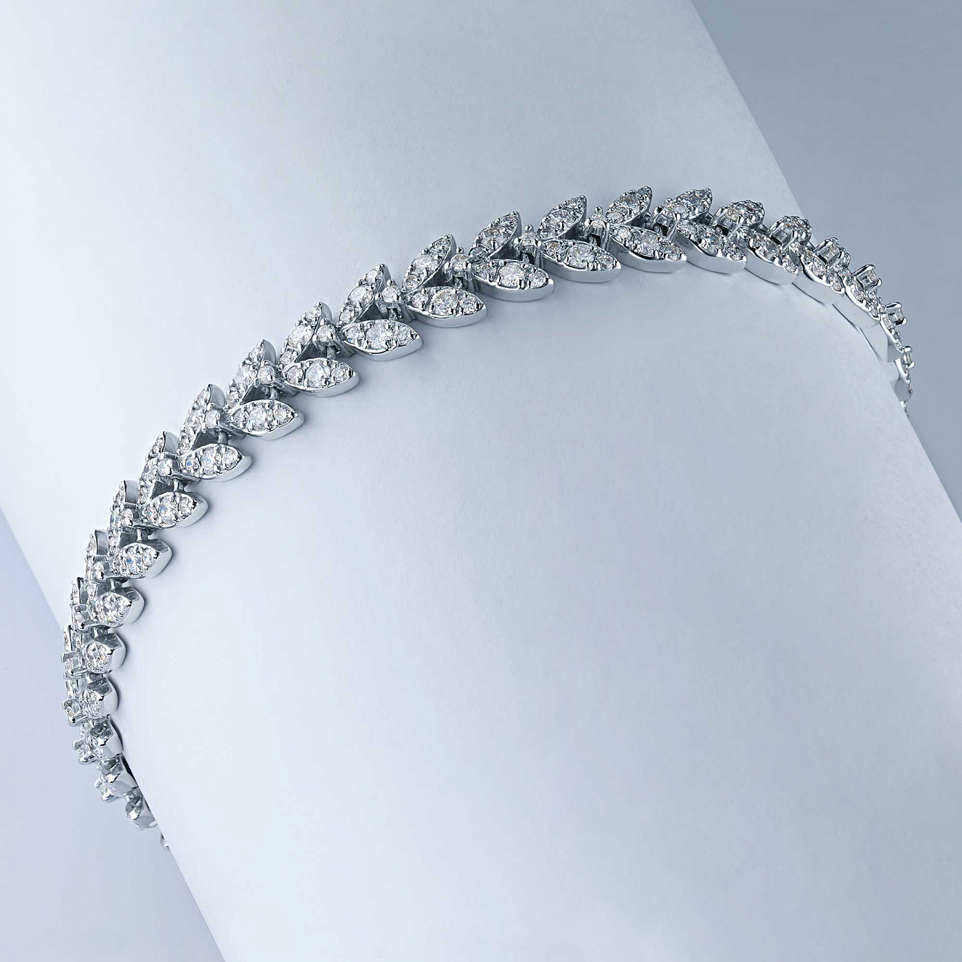 14K White Gold Bracelet with 267 Round-Cut Lab-Created Diamonds 2.554 CT.TW - exquisite jewelry for a stylish look. Gently demonstrates your status, wealth and good taste. Preserves its radiance for a long time and is not afraid of corrosion. Noble shine of the precious metal and the luxurious sparkle of dia-monds will not stay unnoticed. This is a great addition to your business suit or an evening dress.