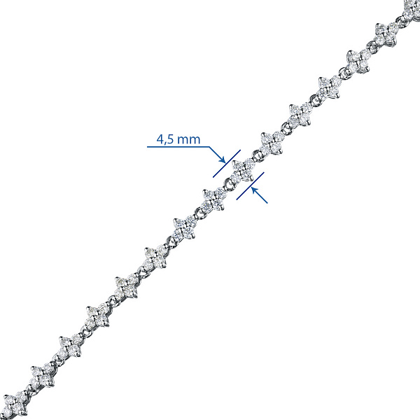 14K White Gold Bracelet with 100 Round-Cut Lab-Created Diamonds 2.144 CT.TW - exquisite jewelry for a stylish look. Gently demonstrates your status, wealth and good taste. Preserves its radiance for a long time and is not afraid of corrosion. Noble shine of the precious metal and the luxurious sparkle of dia-monds will not stay unnoticed. This is a great addition to your business suit or an evening dress.