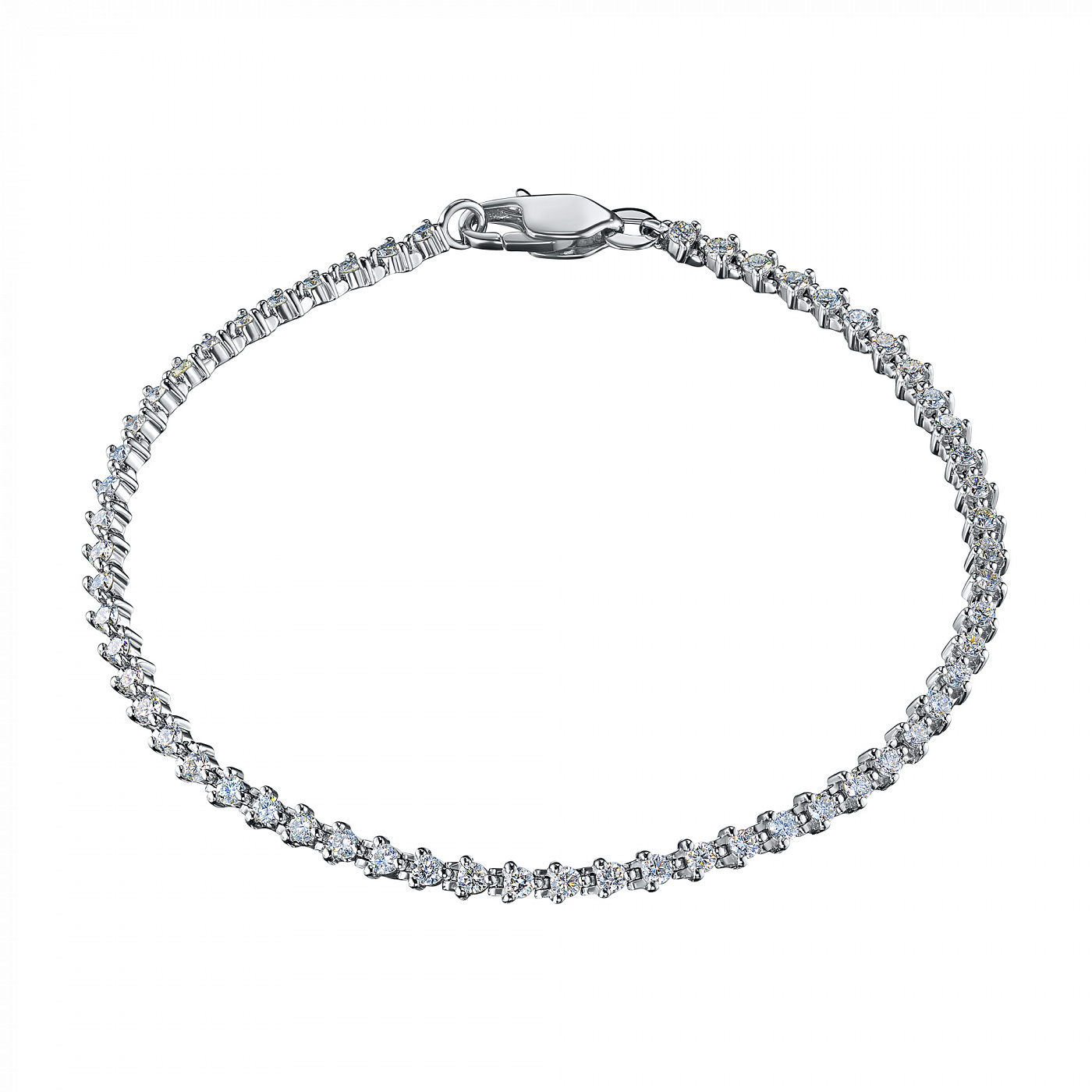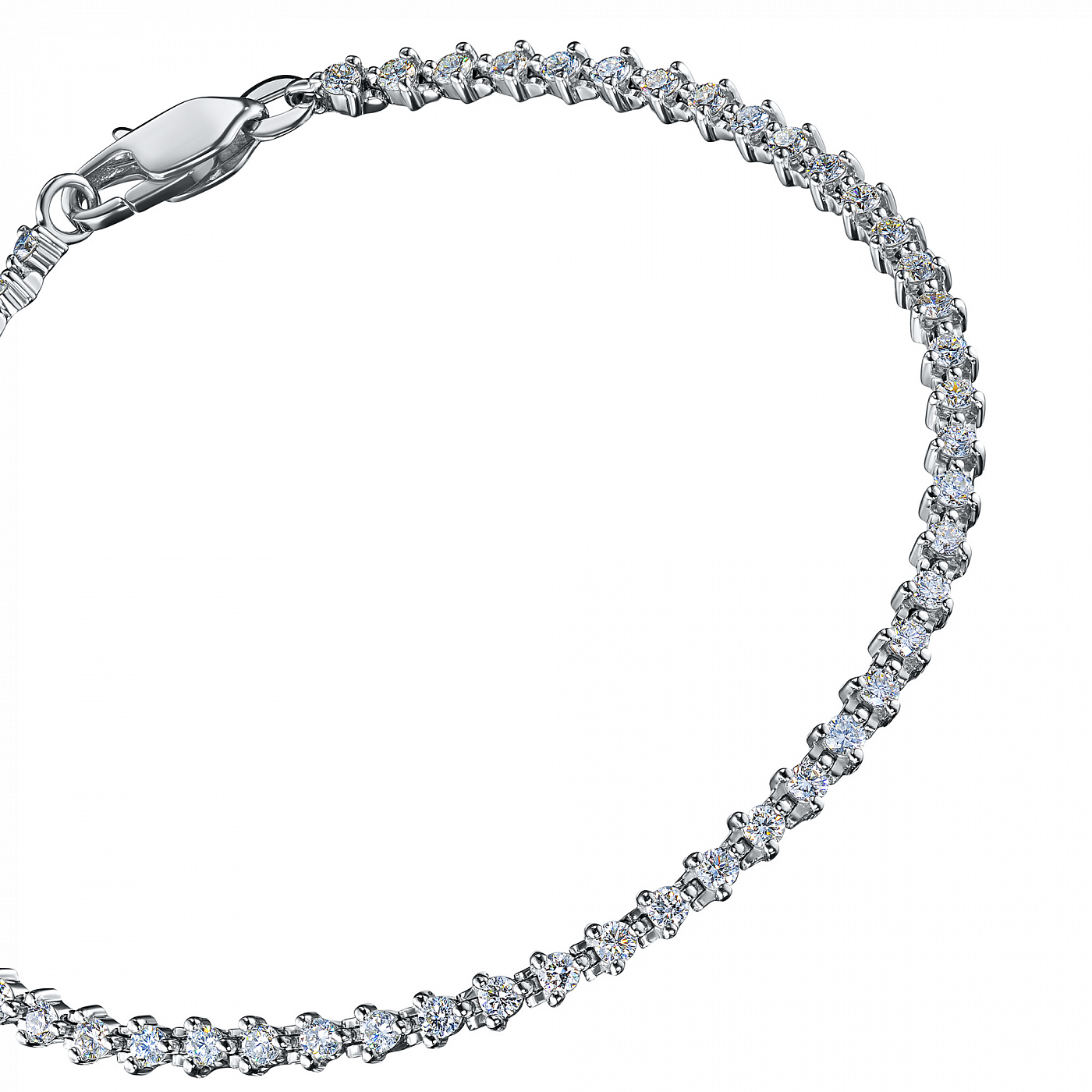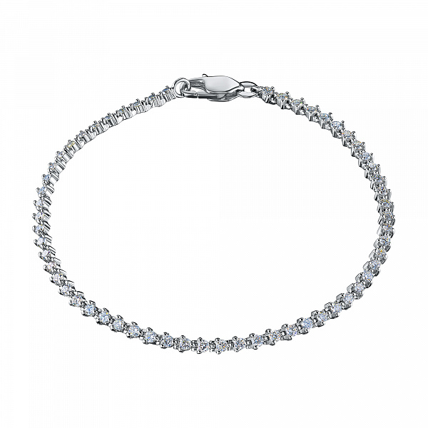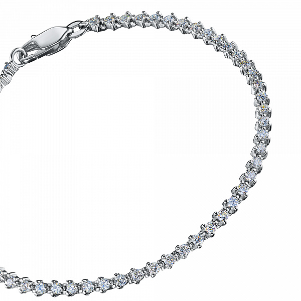 14K White Gold Bracelet with 56 Round-Cut Lab-Created Diamonds 2.005 CT.TW - exquisite jewelry for a stylish look. Gently demonstrates your status, wealth and good taste. Preserves its radiance for a long time and is not afraid of corrosion. Noble shine of the precious metal and the luxurious sparkle of dia-monds will not stay unnoticed. This is a great addition to your business suit or an evening dress.