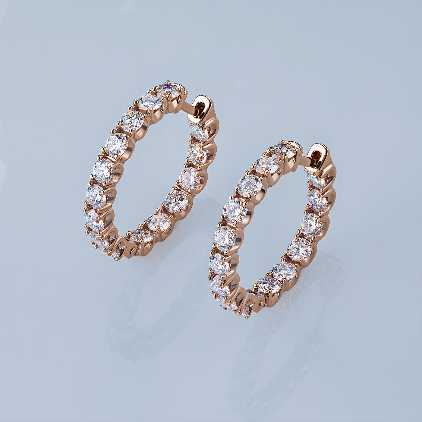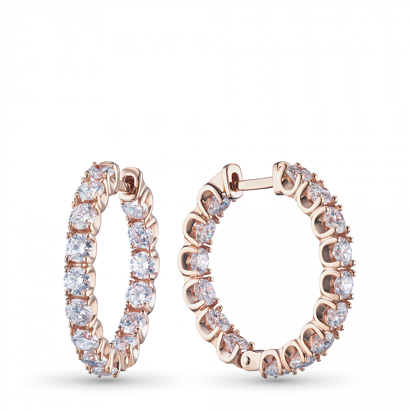 14K Rose Gold Earrings with 30 Round-Cut Lab-Created Diamonds 3.769 CT.TW - an excellent addition to your jewelry collection. Jewelry with natural Diamonds produced at the "EPL". Rose gold emphasizes the play of light on facets of a diamond, not afraid of water and is suitable for everyday wear. Our goods are sold only in retail showrooms.
