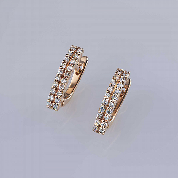 14K Rose Gold Earrings with 40 Round-Cut Lab-Created Diamonds 0.516 CT.TW - an excellent addition to your jewelry collection. Jewelry with natural Diamonds produced at the "EPL". Rose gold emphasizes the play of light on facets of a diamond, not afraid of water and is suitable for everyday wear. Our goods are sold only in retail showrooms.