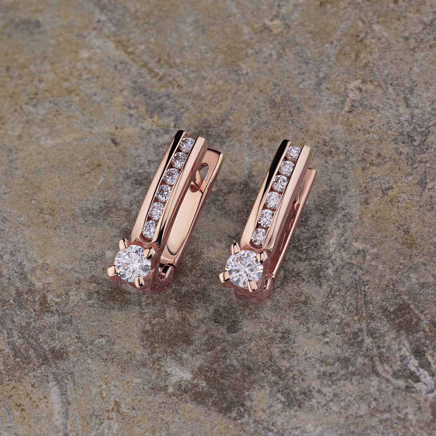 14K Rose Gold Earrings with 14 Round-Cut Lab-Created Diamonds 0.598 CT.TW - an excellent addition to your jewelry collection. Jewelry with natural Diamonds produced at the "EPL". Rose gold emphasizes the play of light on facets of a diamond, not afraid of water and is suitable for everyday wear. Our goods are sold only in retail showrooms.