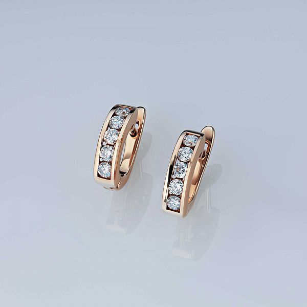14K Rose Gold Earrings with 10 Round-Cut Lab-Created Diamonds 0.495 CT.TW - an excellent addition to your jewelry collection. Jewelry with natural Diamonds produced at the "EPL". Rose gold emphasizes the play of light on facets of a diamond, not afraid of water and is suitable for everyday wear. Our goods are sold only in retail showrooms.