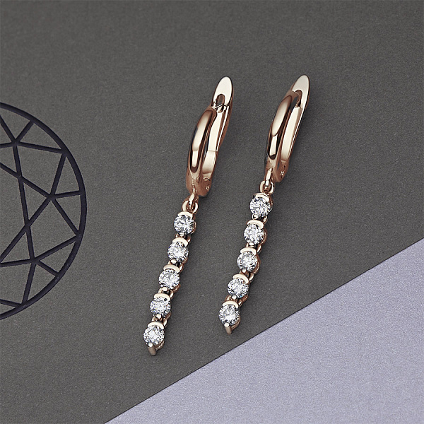 14K Rose Gold Earrings with 10 Round-Cut Lab-Created Diamonds 0.406 CT.TW - an excellent addition to your jewelry collection. Jewelry with natural Diamonds produced at the "EPL". Rose gold emphasizes the play of light on facets of a diamond, not afraid of water and is suitable for everyday wear. Our goods are sold only in retail showrooms.