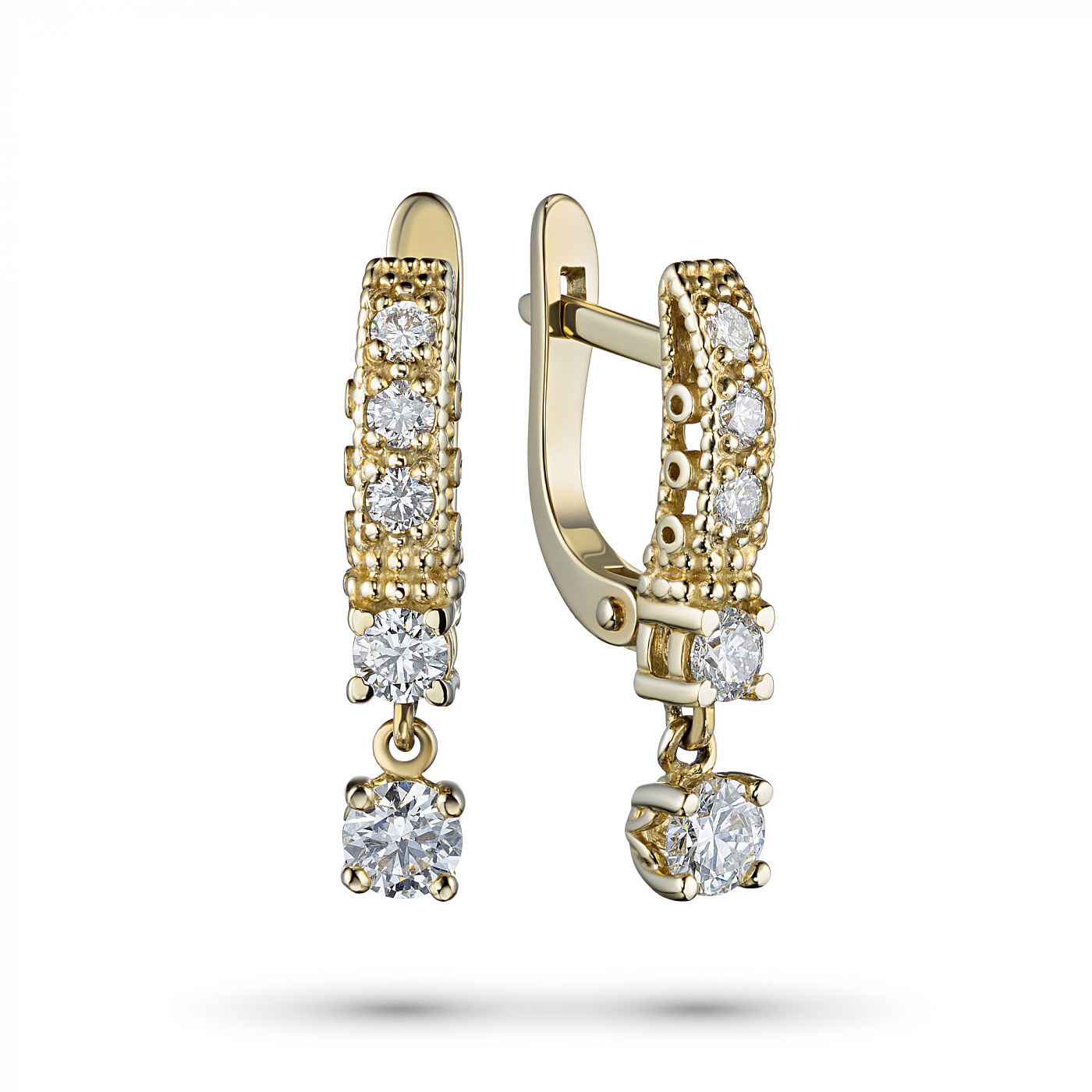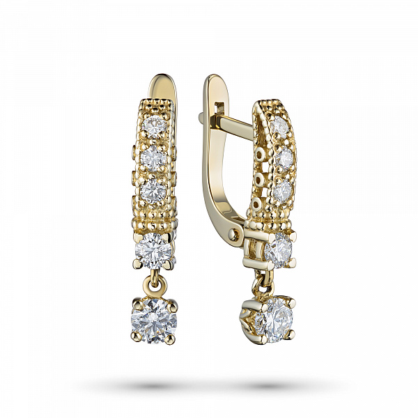 14K Yellow Gold Earrings with 10 Round-Cut Lab-Created Diamonds 0.855 CT.TW - an excellent addition to your jewelry collection. Jewelry with natural Diamonds produced at the "EPL". Yellow gold emphasizes the play of light on facets of a diamond, not afraid of water and is suitable for everyday wear. Our goods are sold only in retail showrooms.