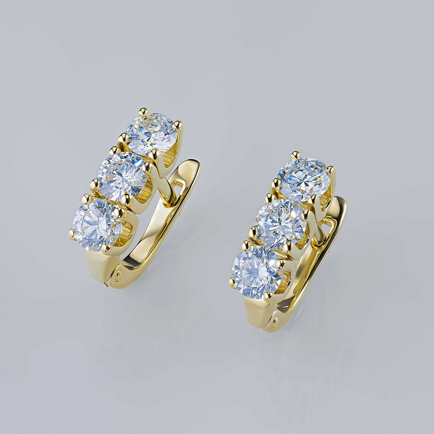 14K Yellow Gold Earrings with 6 Round-Cut Lab-Created Diamonds 2.088 CT.TW - an excellent addition to your jewelry collection. Jewelry with natural Diamonds produced at the "EPL". Yellow gold emphasizes the play of light on facets of a diamond, not afraid of water and is suitable for everyday wear. Our goods are sold only in retail showrooms.
