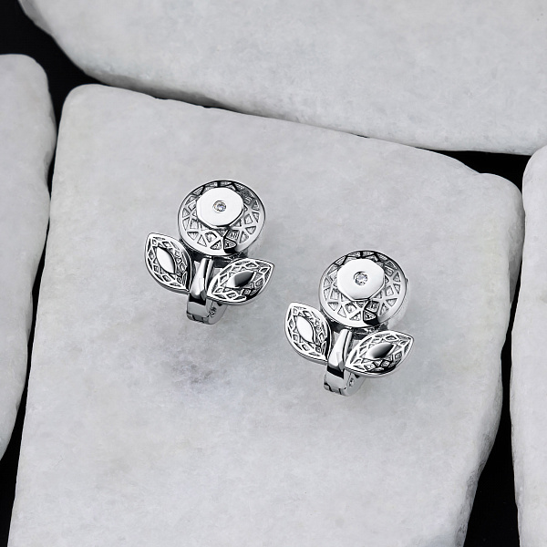 Sterling Silver Earrings with 2 Round-Cut Diamonds 0.009 CT.TW - an excellent addition to your jewelry collection. Jewelry with natural Diamonds produced at the "EPL". Silver emphasizes the play of light on facets of a diamond, not afraid of water and is suitable for everyday wear. Our goods are sold only in retail showrooms.