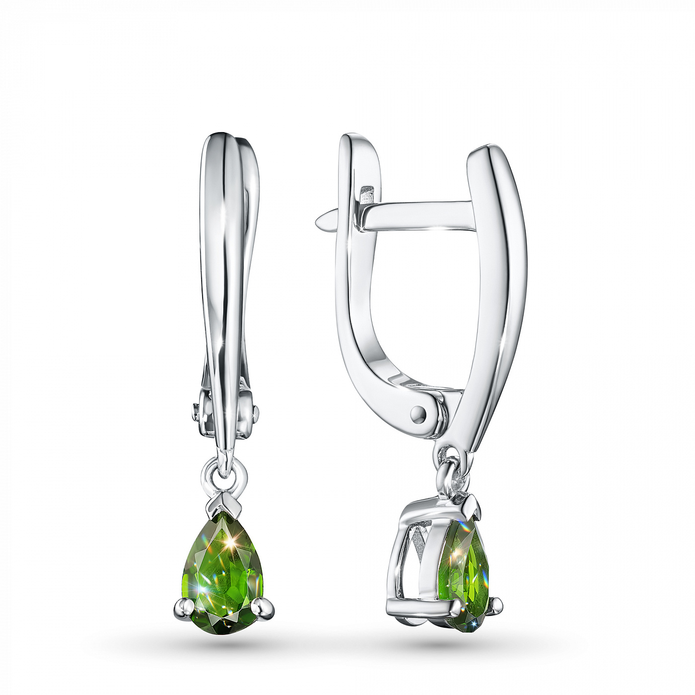 Sterling Silver Earrings with 2 Pear-Cut Chromdiopsides 1.501 CT.TW - an excellent addition to your jewelry collection. Jewelry with natural Diamonds produced at the "EPL". Silver emphasizes the play of light on facets of a diamond, not afraid of water and is suitable for everyday wear. Our goods are sold only in retail showrooms.