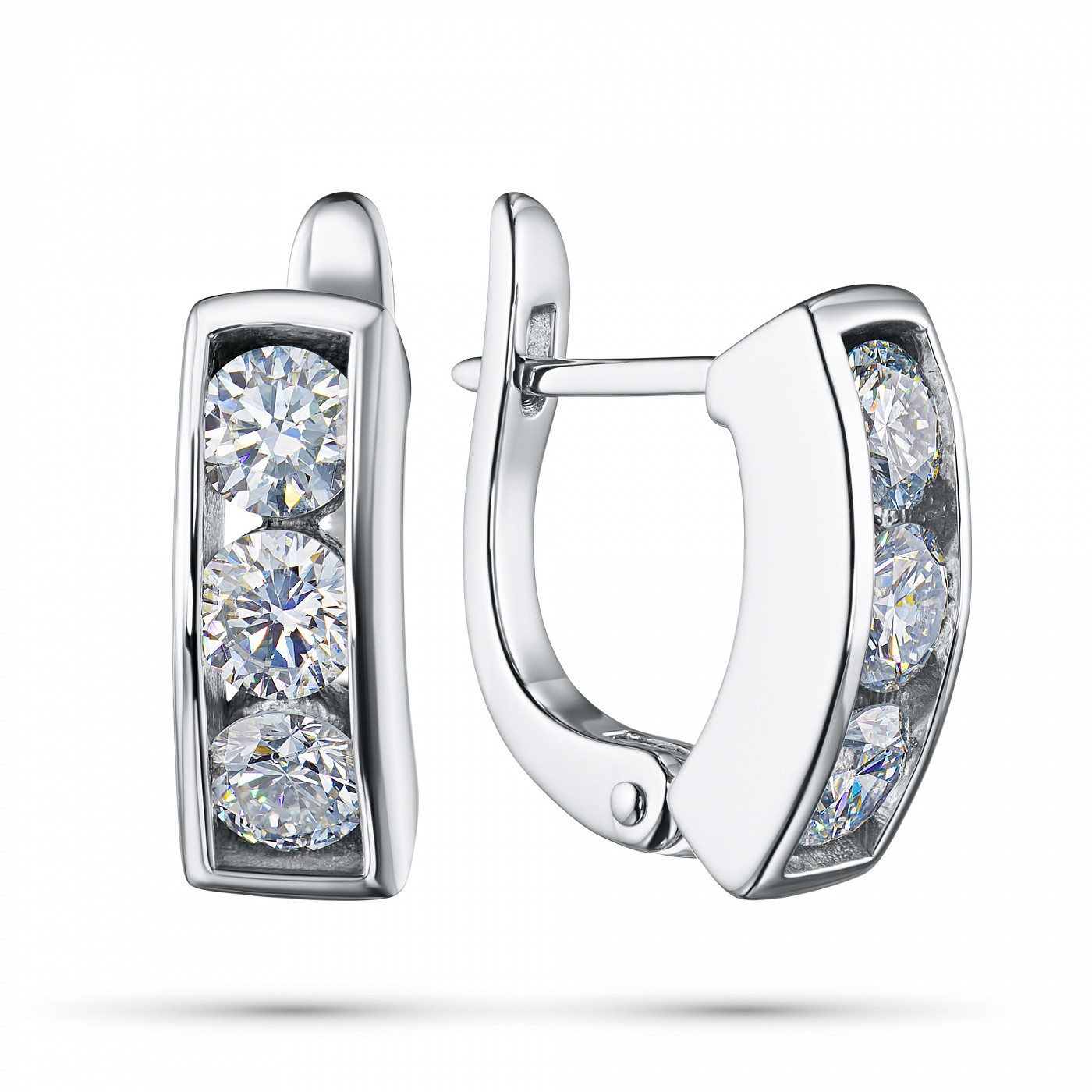 White Gold Earrings with 6 Round-Cut Lab-Created Diamonds 1.323 CT.TW - an excellent addition to your jewelry collection. Jewelry with natural Diamonds produced at the "EPL". White gold emphasizes the play of light on facets of a diamond, not afraid of water and is suitable for everyday wear. Our goods are sold only in retail showrooms.