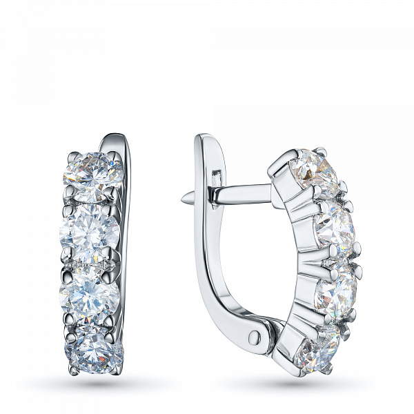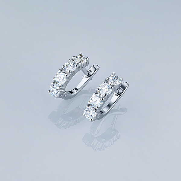 White Gold Earrings with 8 Round-Cut Lab-Created Diamonds 1.878 CT.TW - an excellent addition to your jewelry collection. Jewelry with natural Diamonds produced at the "EPL". White gold emphasizes the play of light on facets of a diamond, not afraid of water and is suitable for everyday wear. Our goods are sold only in retail showrooms.
