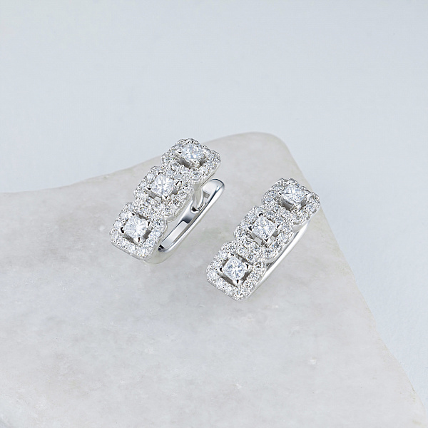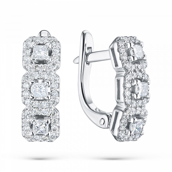 14K White Gold Earrings with 78 Round-Cut Lab-Created Diamonds 0.783 CT.TW - an excellent addition to your jewelry collection. Jewelry with natural Diamonds produced at the "EPL". White gold emphasizes the play of light on facets of a diamond, not afraid of water and is suitable for everyday wear. Our goods are sold only in retail showrooms.