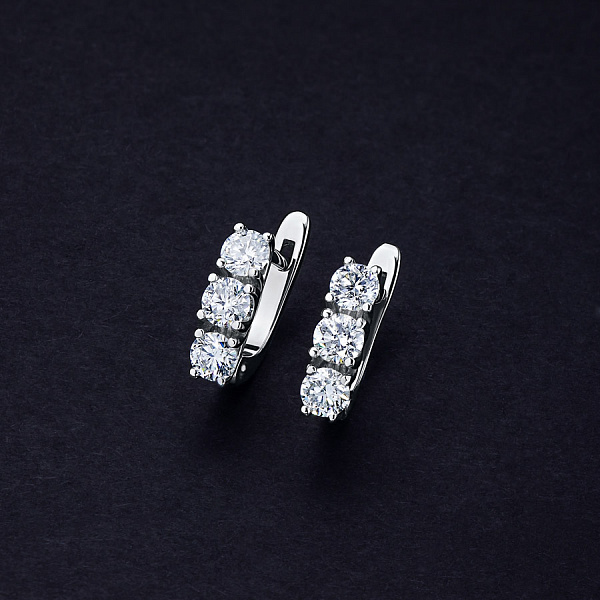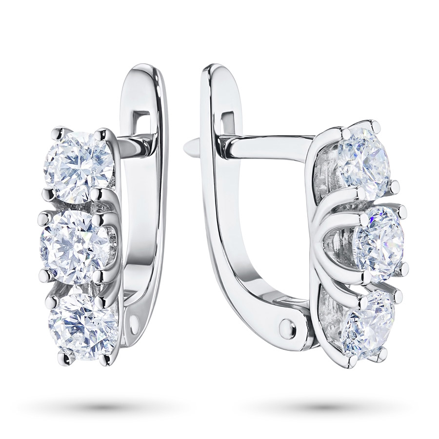 14K White Gold Earrings with 6 Round-Cut Lab-Created Diamonds 1.084 CT.TW - an excellent addition to your jewelry collection. Jewelry with natural Diamonds produced at the "EPL". White gold emphasizes the play of light on facets of a diamond, not afraid of water and is suitable for everyday wear. Our goods are sold only in retail showrooms.
