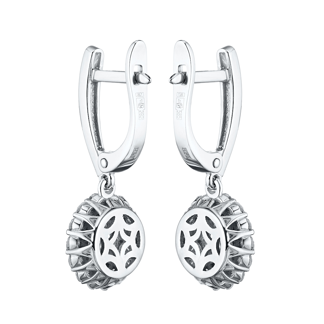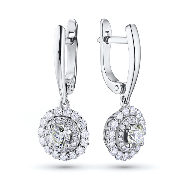 14K White Gold Earrings with 64 Round-Cut Lab-Created Diamonds 1.45 CT.TW - an excellent addition to your jewelry collection. Jewelry with natural Diamonds produced at the "EPL". White gold emphasizes the play of light on facets of a diamond, not afraid of water and is suitable for everyday wear. Our goods are sold only in retail showrooms.