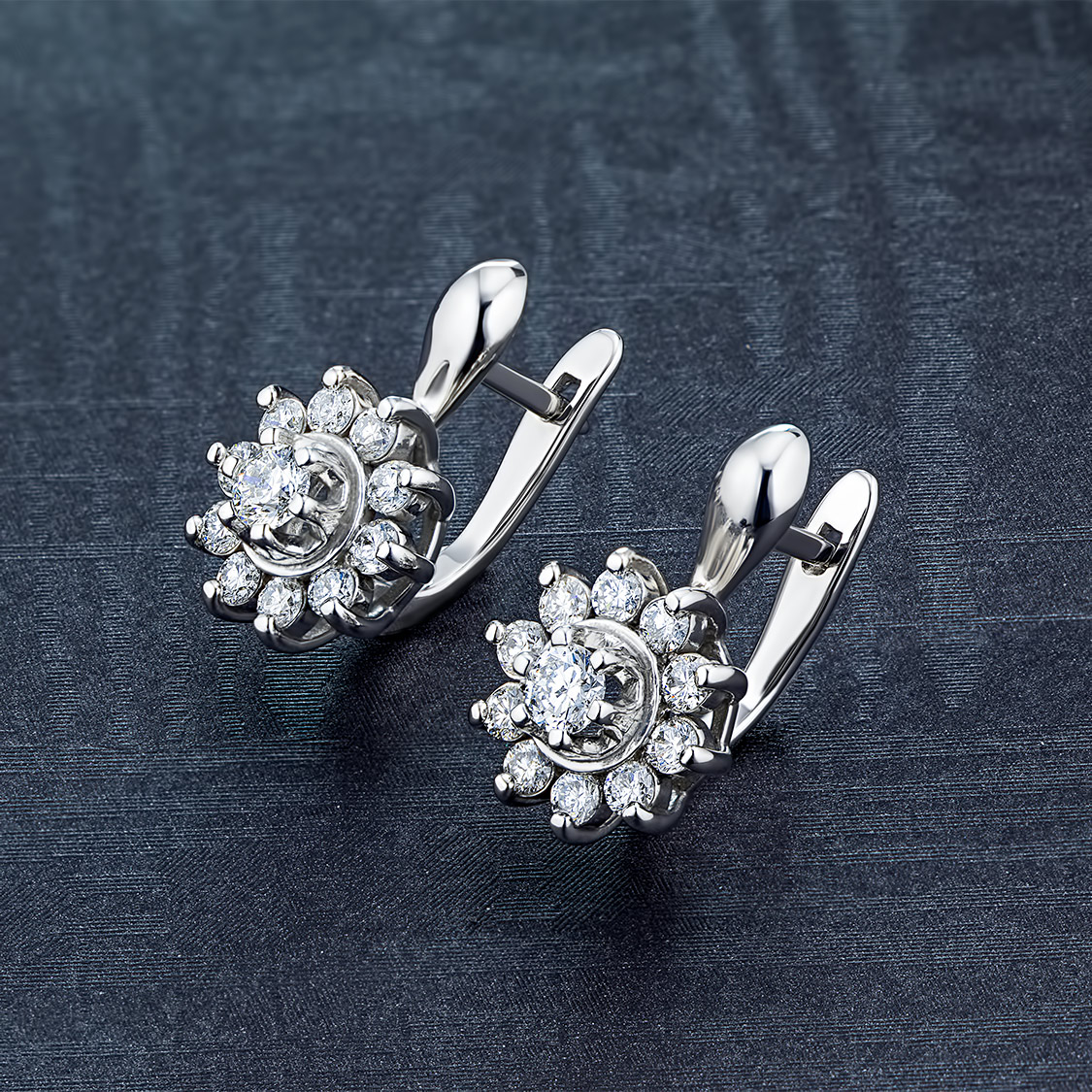 14K White Gold Earrings with 22 Round-Cut Lab-Created Diamonds 1.534 CT.TW - an excellent addition to your jewelry collection. Jewelry with natural Diamonds produced at the "EPL". White gold emphasizes the play of light on facets of a diamond, not afraid of water and is suitable for everyday wear. Our goods are sold only in retail showrooms.