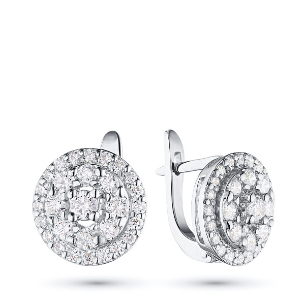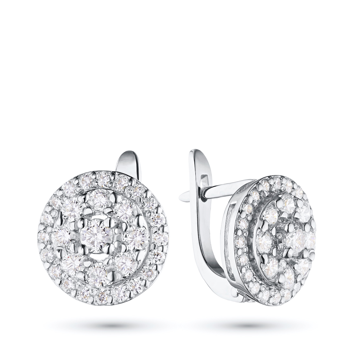 White Gold Earrings with 58 Round-Cut Lab-Created Diamonds 1.36 CT.TW - an excellent addition to your jewelry collection. Jewelry with natural Diamonds produced at the "EPL". White gold emphasizes the play of light on facets of a diamond, not afraid of water and is suitable for everyday wear. Our goods are sold only in retail showrooms.