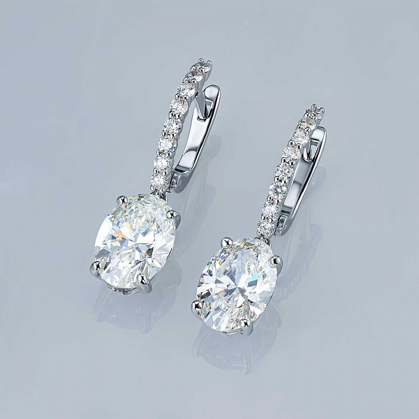 14K White Gold Earrings with 18 Round-Cut Lab-Created Diamonds 6.53 CT.TW - an excellent addition to your jewelry collection. Jewelry with natural Diamonds produced at the "EPL". White gold emphasizes the play of light on facets of a diamond, not afraid of water and is suitable for everyday wear. Our goods are sold only in retail showrooms.