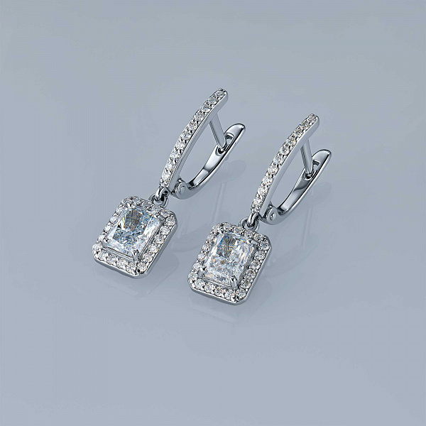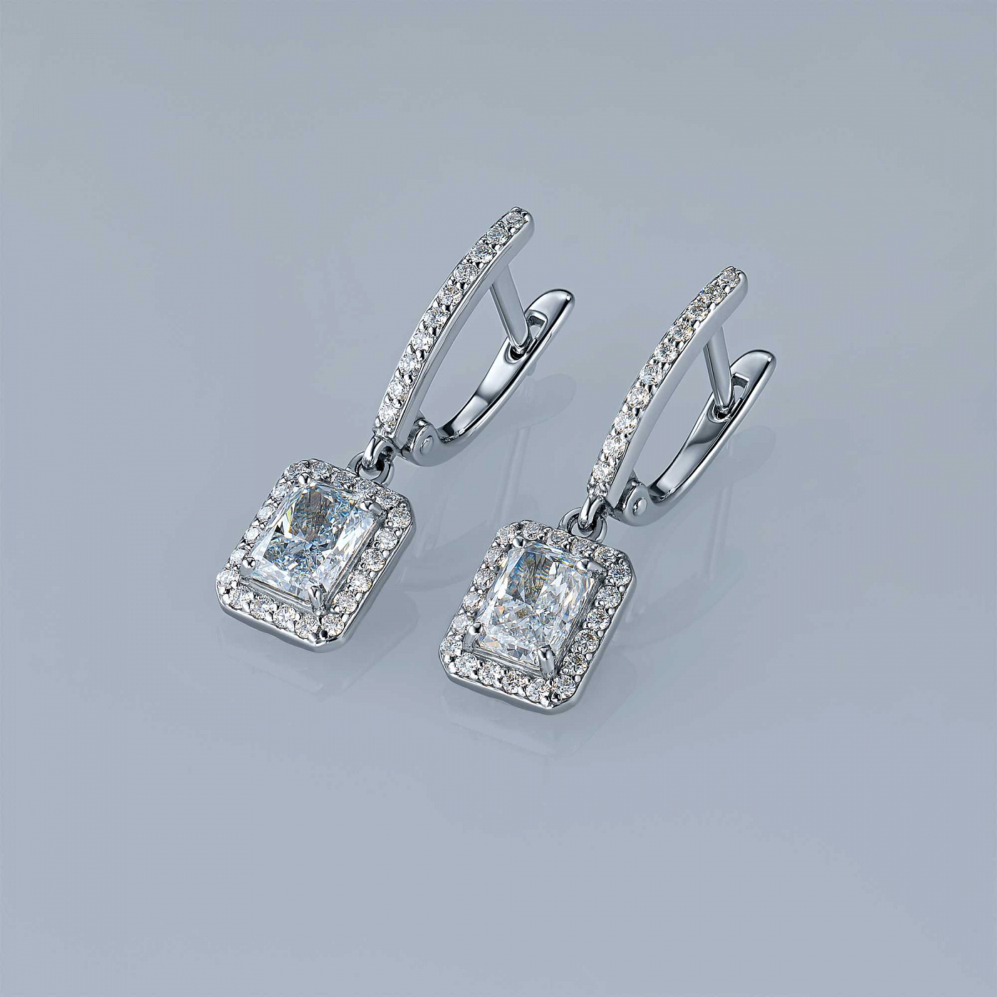 14K White Gold Earrings with 62 -Cut Lab-Created Diamonds 2.544 CT.TW - an excellent addition to your jewelry collection. Jewelry with natural Diamonds produced at the "EPL". White gold emphasizes the play of light on facets of a diamond, not afraid of water and is suitable for everyday wear. Our goods are sold only in retail showrooms.