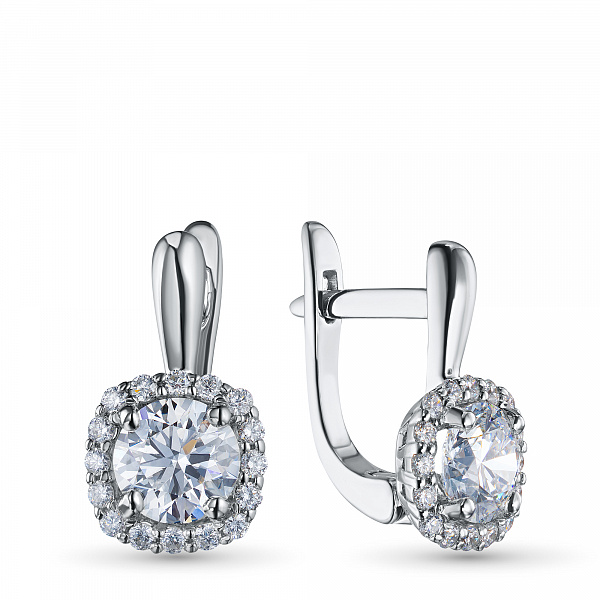 White Gold Earrings with 34 Round-Cut Lab-Created Diamonds 3.7 CT.TW - an excellent addition to your jewelry collection. Jewelry with natural Diamonds produced at the "EPL". White gold emphasizes the play of light on facets of a diamond, not afraid of water and is suitable for everyday wear. Our goods are sold only in retail showrooms.