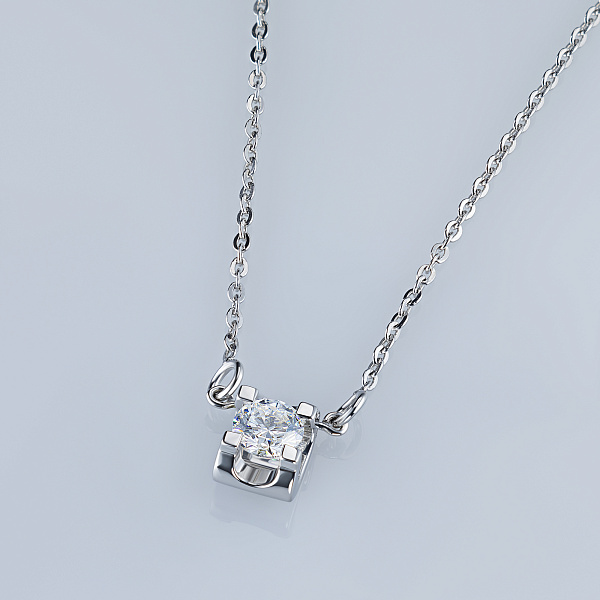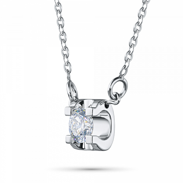 Sterling Silver Necklace with 1 Round-Cut Lab-Created Diamond 0.256 CT.TW - is a bright size model 43.0, which will take a prominent place in your collection of jewelry or become an ideal gift for a beloved person. Luxuri-ous, sophisticated and attractive product, with gemstones, has a perfect cut and an ideal transparency, that will become a bright element in any style and will make even the simplest outfit more elegant. Silver ( test) - the perfect background for diamonds, fully revealing their beauty and sophistication. The weight of the model is 2.51 gram, on the neck, it looks very neat and does not cause any discomfort. $124 - is an acceptable price for the opportunity to stand out from the crowd and get plenty of admiring glances.