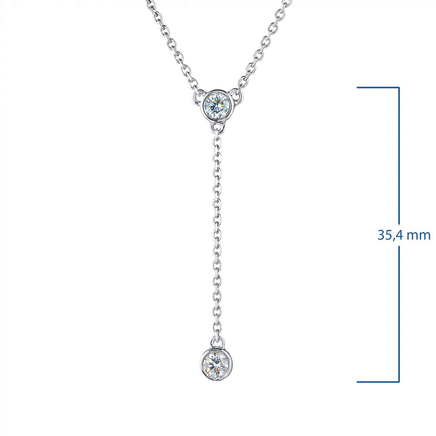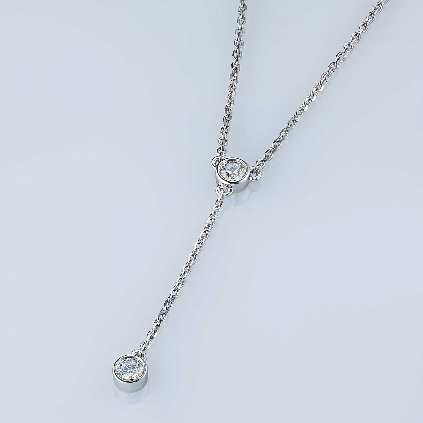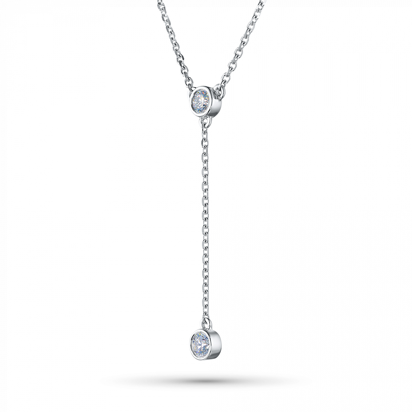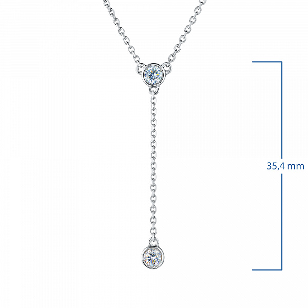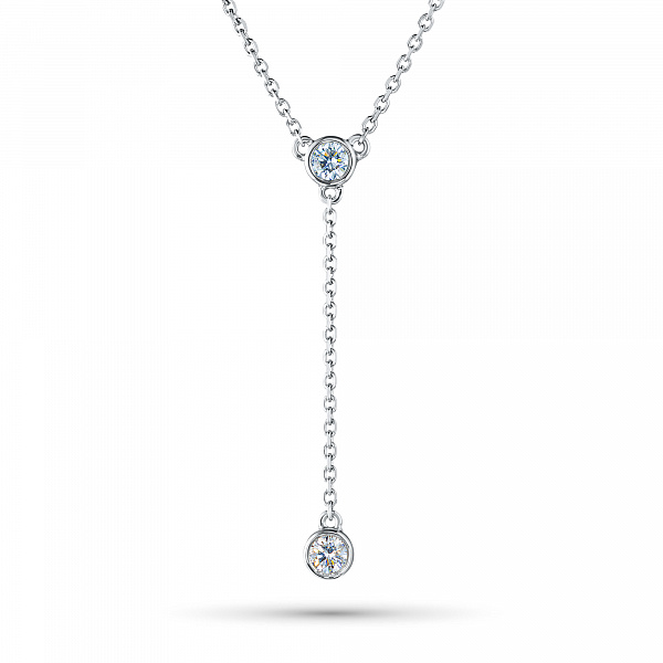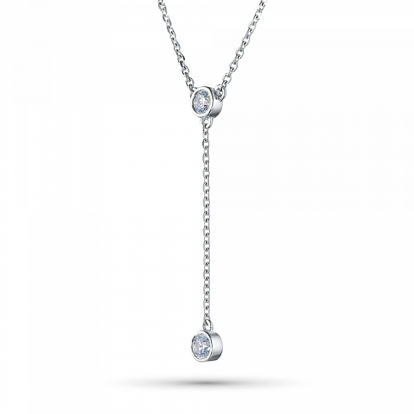 Sterling Silver Necklace with 2 Round-Cut Lab-Created Diamonds 0.213 CT.TW - is a bright size model 43.0, which will take a prominent place in your collection of jewelry or become an ideal gift for a beloved person. Luxuri-ous, sophisticated and attractive product, with gemstones, has a perfect cut and an ideal transparency, that will become a bright element in any style and will make even the simplest outfit more elegant. Silver ( test) - the perfect background for diamonds, fully revealing their beauty and sophistication. The weight of the model is 2.56 gram, on the neck, it looks very neat and does not cause any discomfort. $137 - is an acceptable price for the opportunity to stand out from the crowd and get plenty of admiring glances.