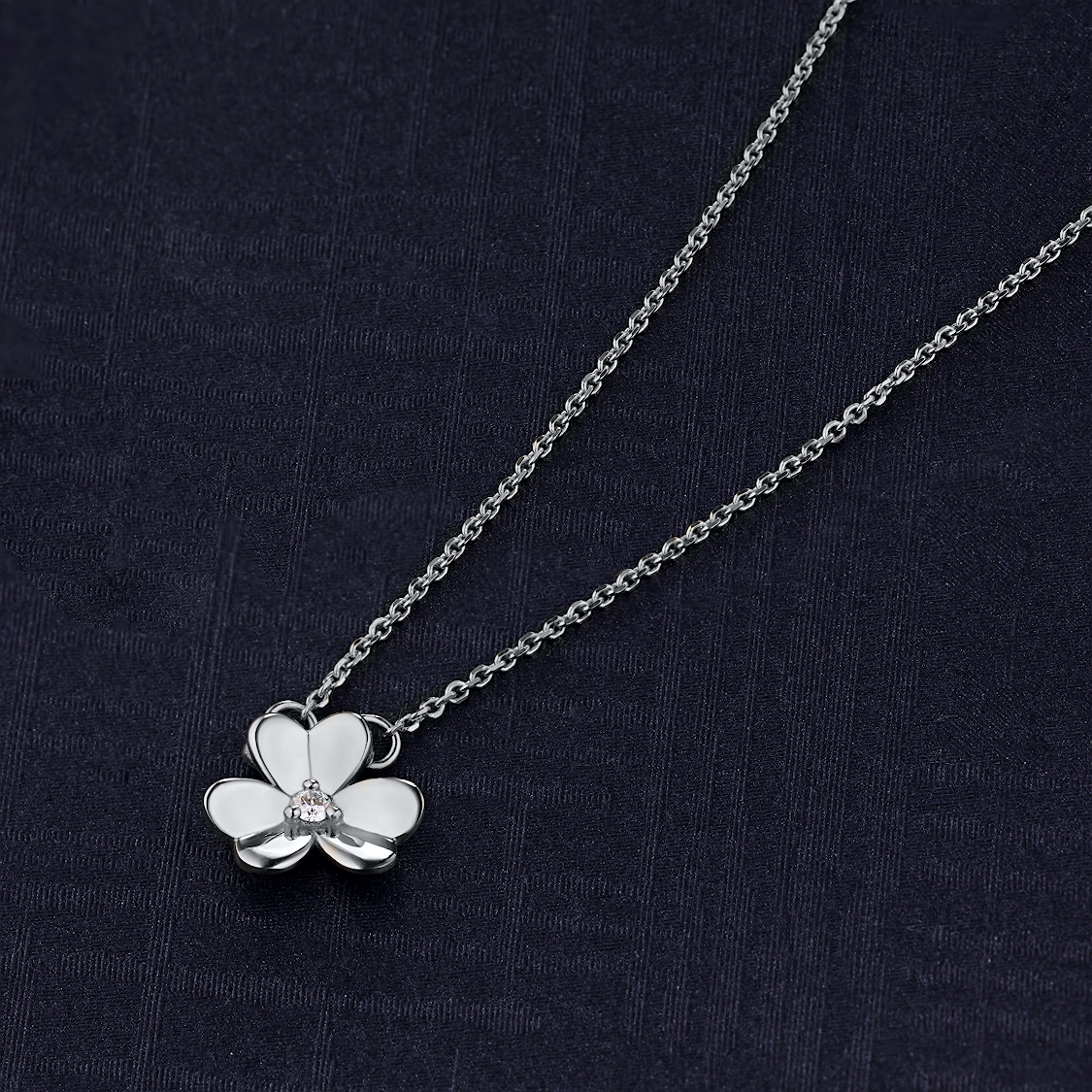 14K White Gold Necklace with 1 Round-Cut Lab-Created Diamond 0.016 CT.TW