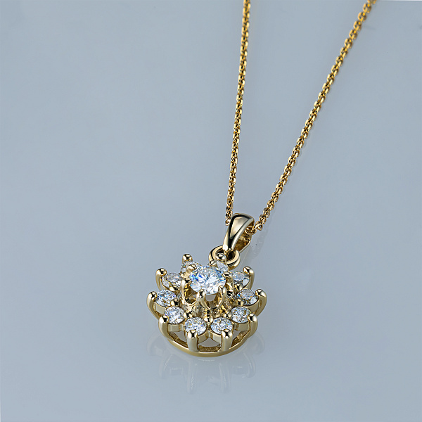 14K Yellow Gold Pendant with 11 Round-Cut Lab-Created Diamonds 0.791 CT.TW- a stylish accessory for special occasions and every day activities. Yellow gold an elegant look in any situation alone or in combination with other products. Our prices will surprise you - only $743 per item! T(). With certification tag provided.