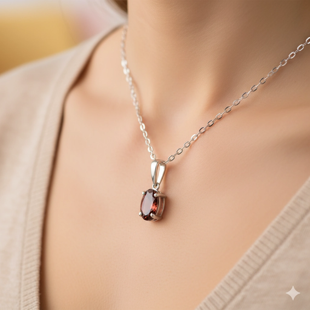 Sterling Silver Pendant with 1 Oval-Cut Garnet 1.433 CT.TW- a stylish accessory for special occasions and every day activities. Silver an elegant look in any situation alone or in combination with other products. Our prices will surprise you - only $0 per item! T(). With certification tag provided.