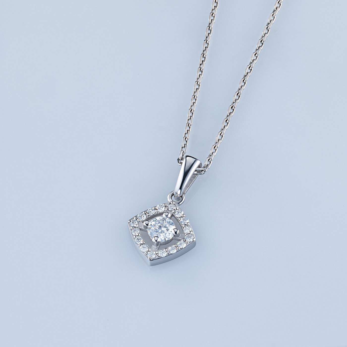14K White Gold Pendant with 17 Round-Cut Lab-Created Diamonds 0.35 CT.TW- a stylish accessory for special occasions and every day activities. White gold an elegant look in any situation alone or in combination with other products. Our prices will surprise you - only $331 per item! T(). With certification tag provided.