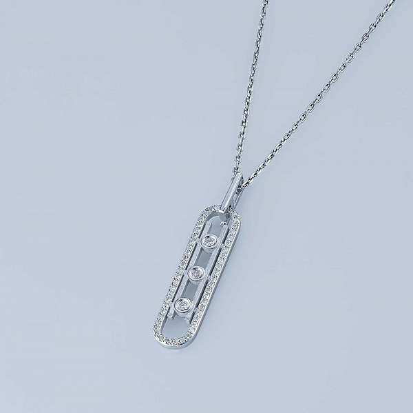 14K White Gold Pendant with 54 Round-Cut Lab-Created Diamonds 0.349 CT.TW- a stylish accessory for special occasions and every day activities. White gold an elegant look in any situation alone or in combination with other products. Our prices will surprise you - only $590 per item! T(14K). With certification tag provided.