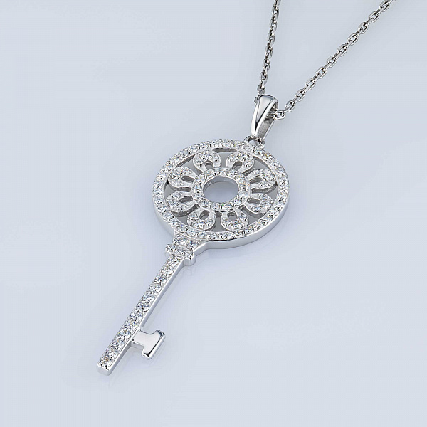 14K White Gold Pendant with 88 Round-Cut Lab-Created Diamonds 0.722 CT.TW- a stylish accessory for special occasions and every day activities. White gold an elegant look in any situation alone or in combination with other products. Our prices will surprise you - only $938 per item! T(14K). With certification tag provided.