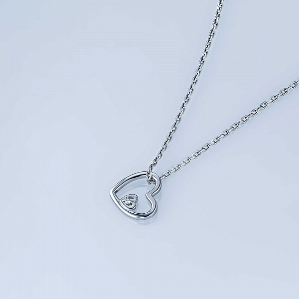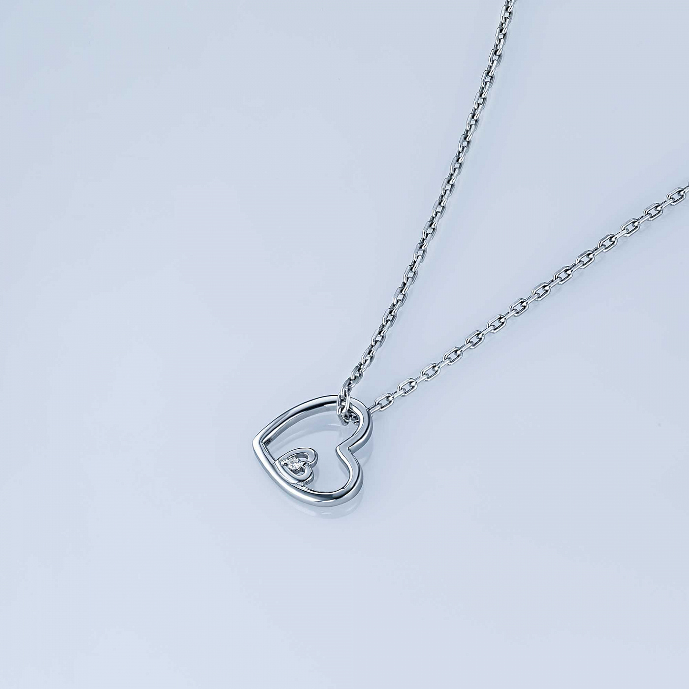 14K White Gold Pendant with 1 Round-Cut Lab-Created Diamond 0.007 CT.TW