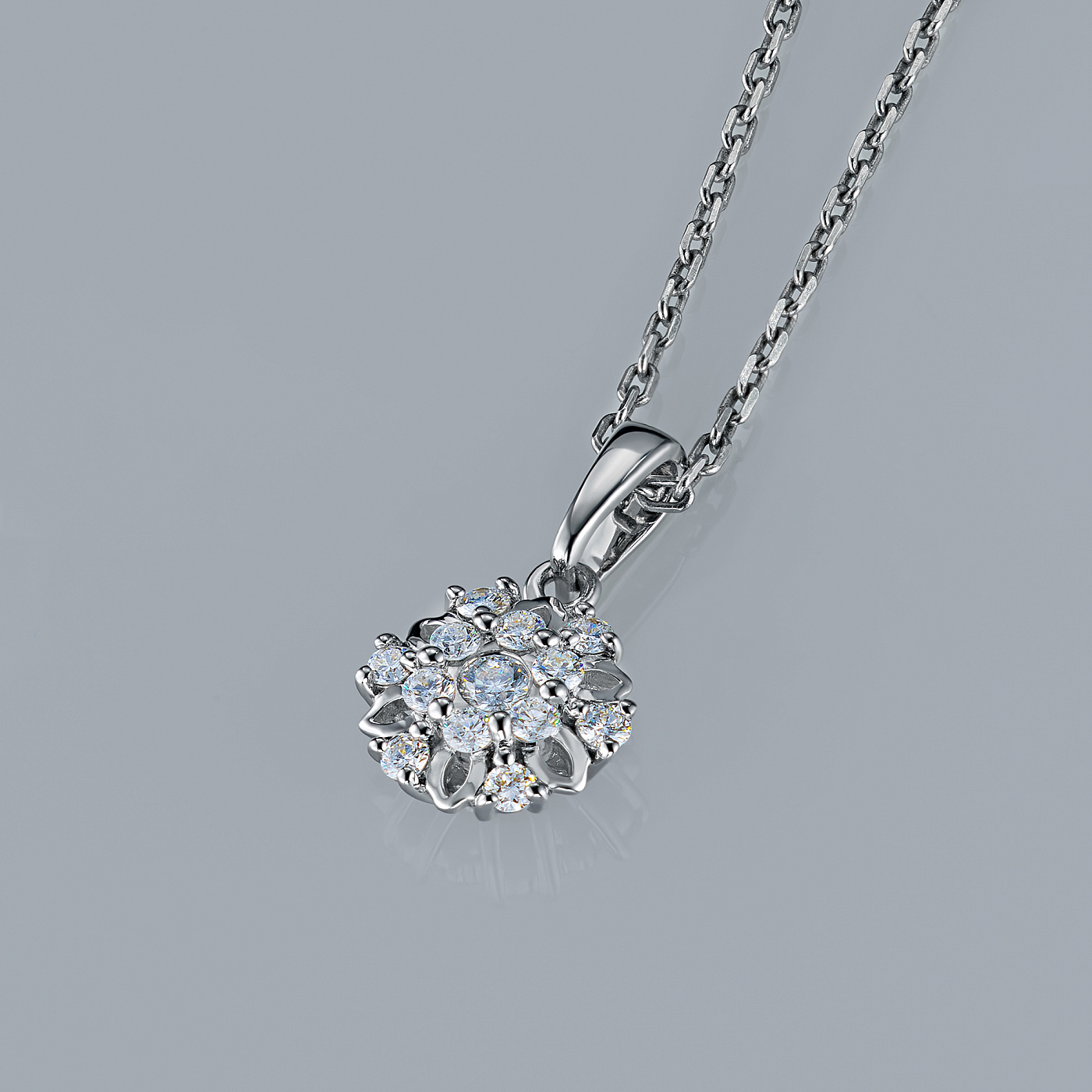 14K White Gold Pendant with 13 Round-Cut Lab-Created Diamonds 0.297 CT.TW- a stylish accessory for special occasions and every day activities. White gold an elegant look in any situation alone or in combination with other products. Our prices will surprise you - only $294 per item! T(14K). With certification tag provided.