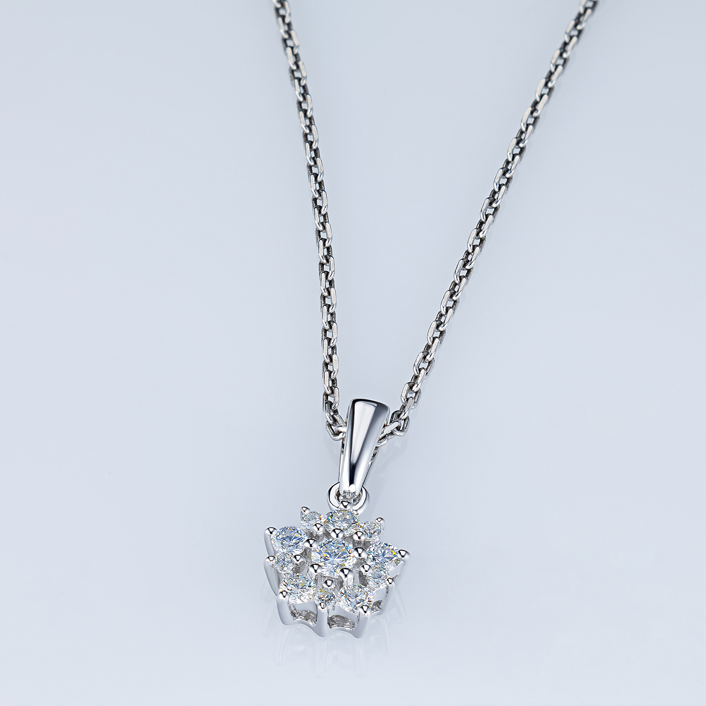 14K White Gold Pendant with 11 Round-Cut Lab-Created Diamonds 0.261 CT.TW- a stylish accessory for special occasions and every day activities. White gold an elegant look in any situation alone or in combination with other products. Our prices will surprise you - only $268 per item! T(14K). With certification tag provided.