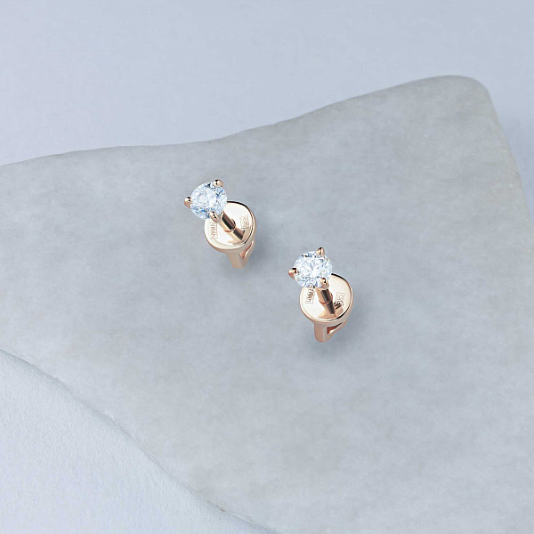 14K Rose Gold Earring Studs with 2 Round-Cut Lab-Created Diamonds 0.61 CT.TW - an excellent addition to your jewelry collection. Jewelry with natural Diamonds produced at the "EPL". Rose gold emphasizes the play of light on facets of a diamond, not afraid of water and is suitable for everyday wear. Our goods are sold only in retail showrooms.
