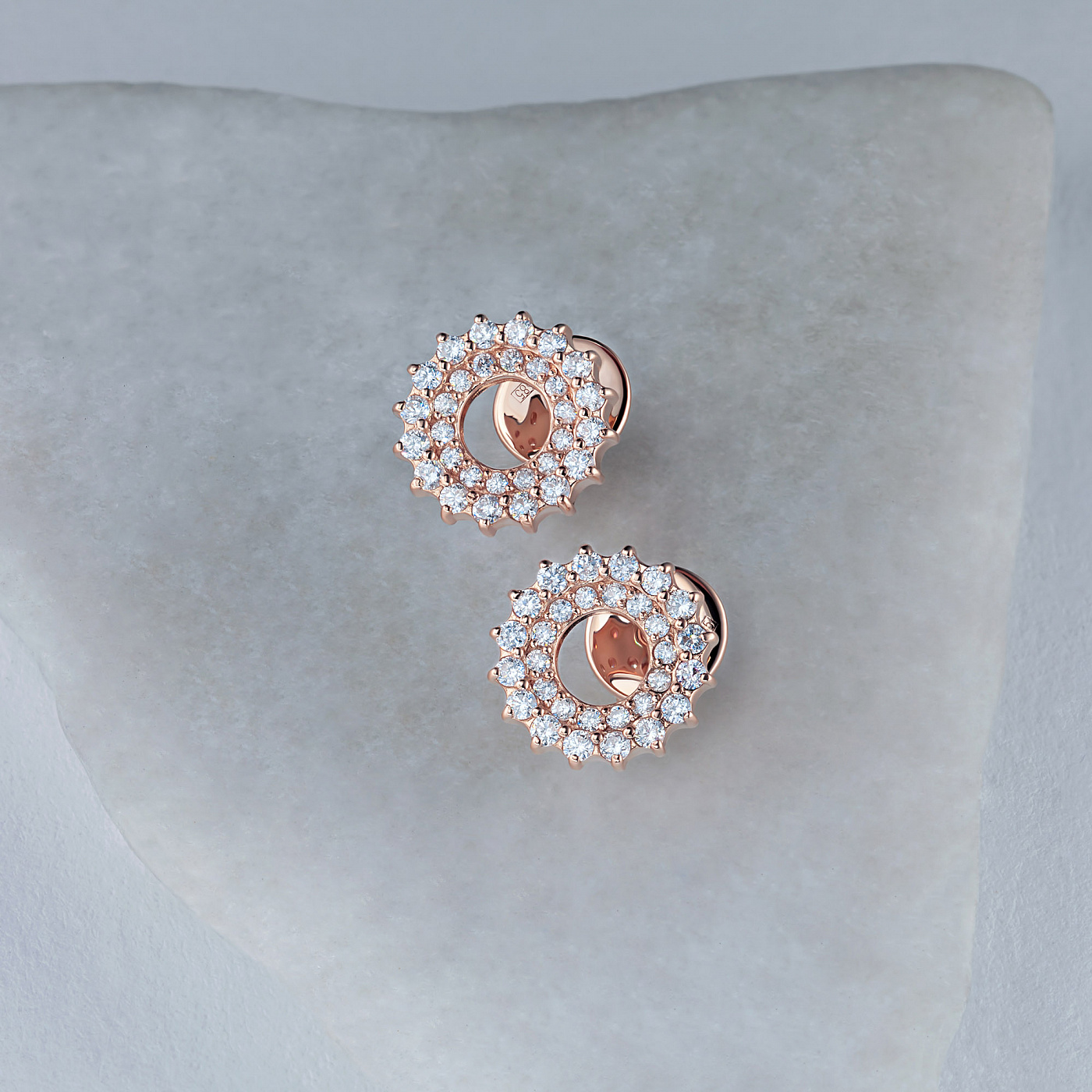 14K Rose Gold Earring Studs with 60 Round-Cut Lab-Created Diamonds 0.377 CT.TW - an excellent addition to your jewelry collection. Jewelry with natural Diamonds produced at the "EPL". Rose gold emphasizes the play of light on facets of a diamond, not afraid of water and is suitable for everyday wear. Our goods are sold only in retail showrooms.