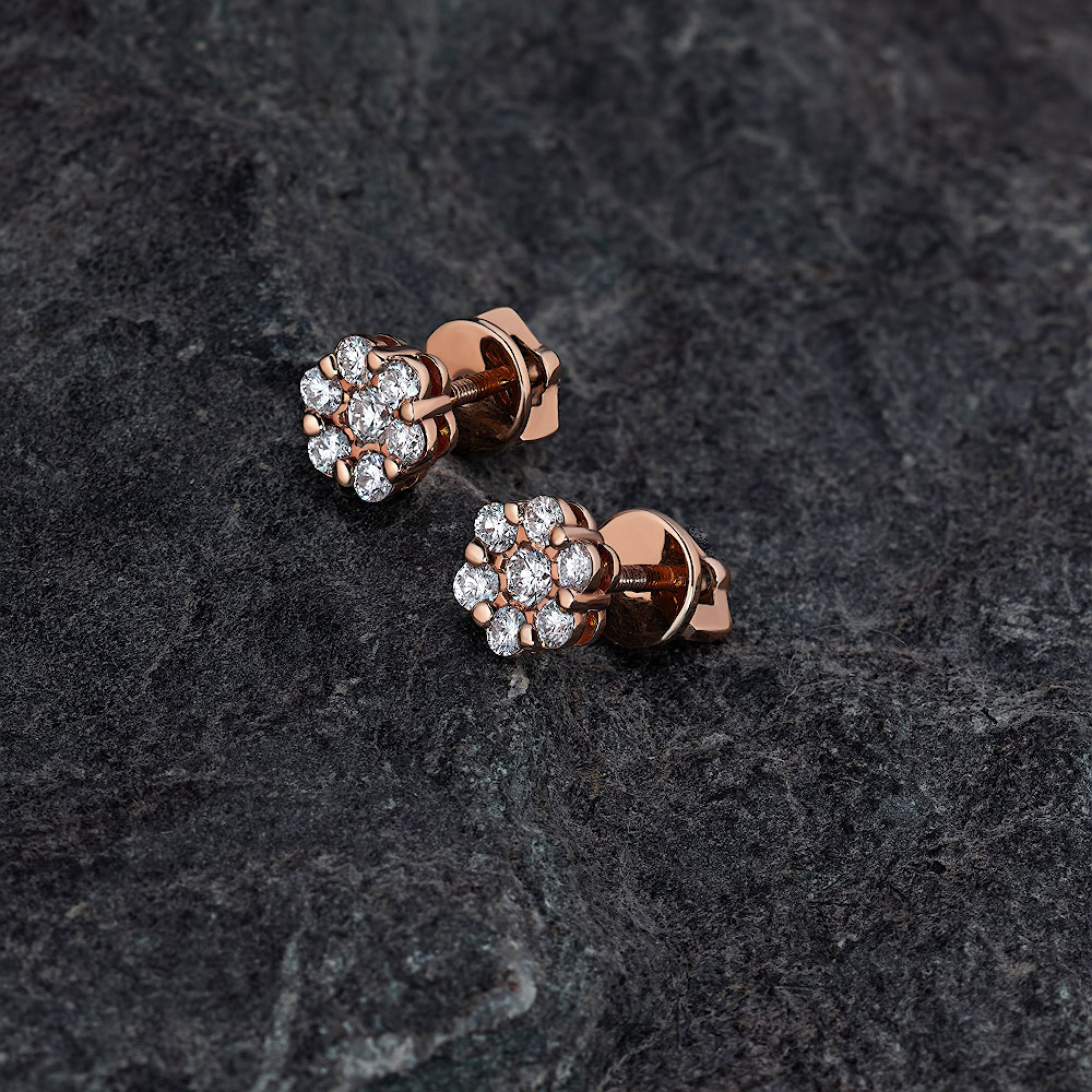 14K Rose Gold Earring Studs with 14 Round-Cut Lab-Created Diamonds 0.667 CT.TW - an excellent addition to your jewelry collection. Jewelry with natural Diamonds produced at the "EPL". Rose gold emphasizes the play of light on facets of a diamond, not afraid of water and is suitable for everyday wear. Our goods are sold only in retail showrooms.