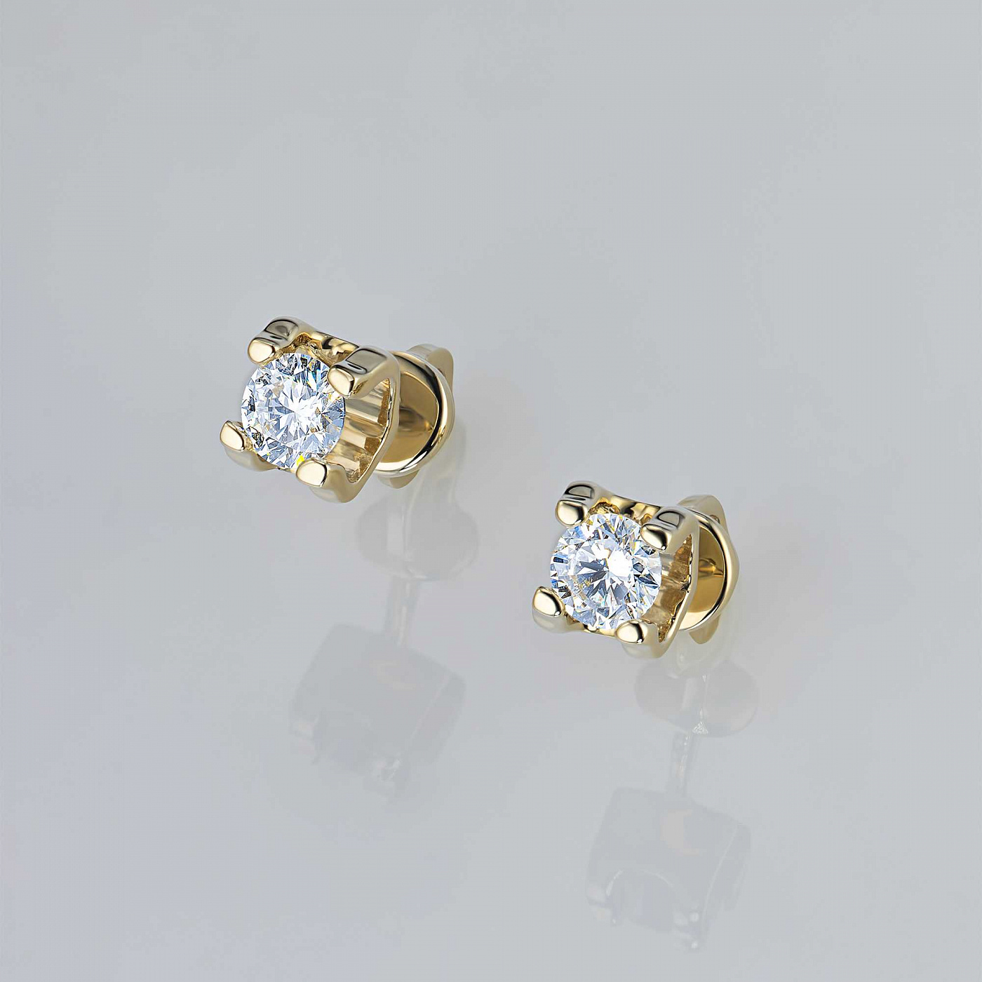 14K Yellow Gold Earring Studs with 2 Round-Cut Lab-Created Diamonds 0.916 CT.TW - an excellent addition to your jewelry collection. Jewelry with natural Diamonds produced at the "EPL". Yellow gold emphasizes the play of light on facets of a diamond, not afraid of water and is suitable for everyday wear. Our goods are sold only in retail showrooms.