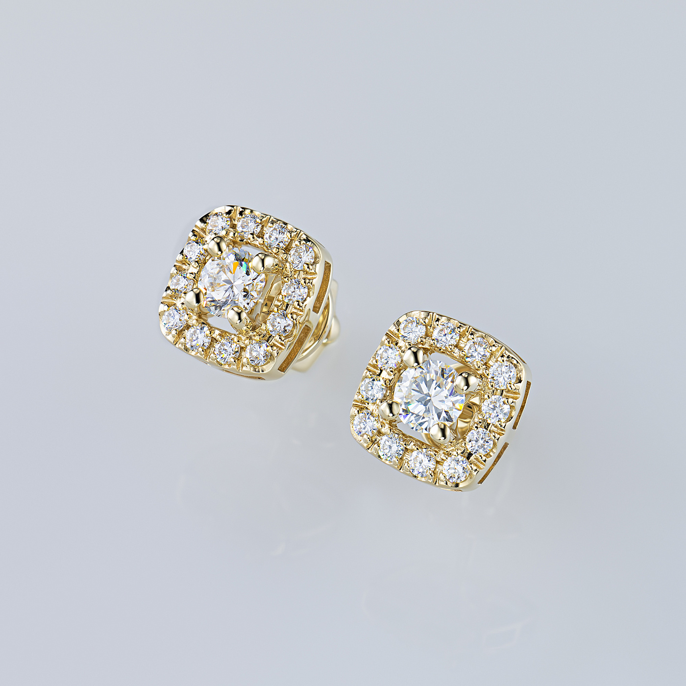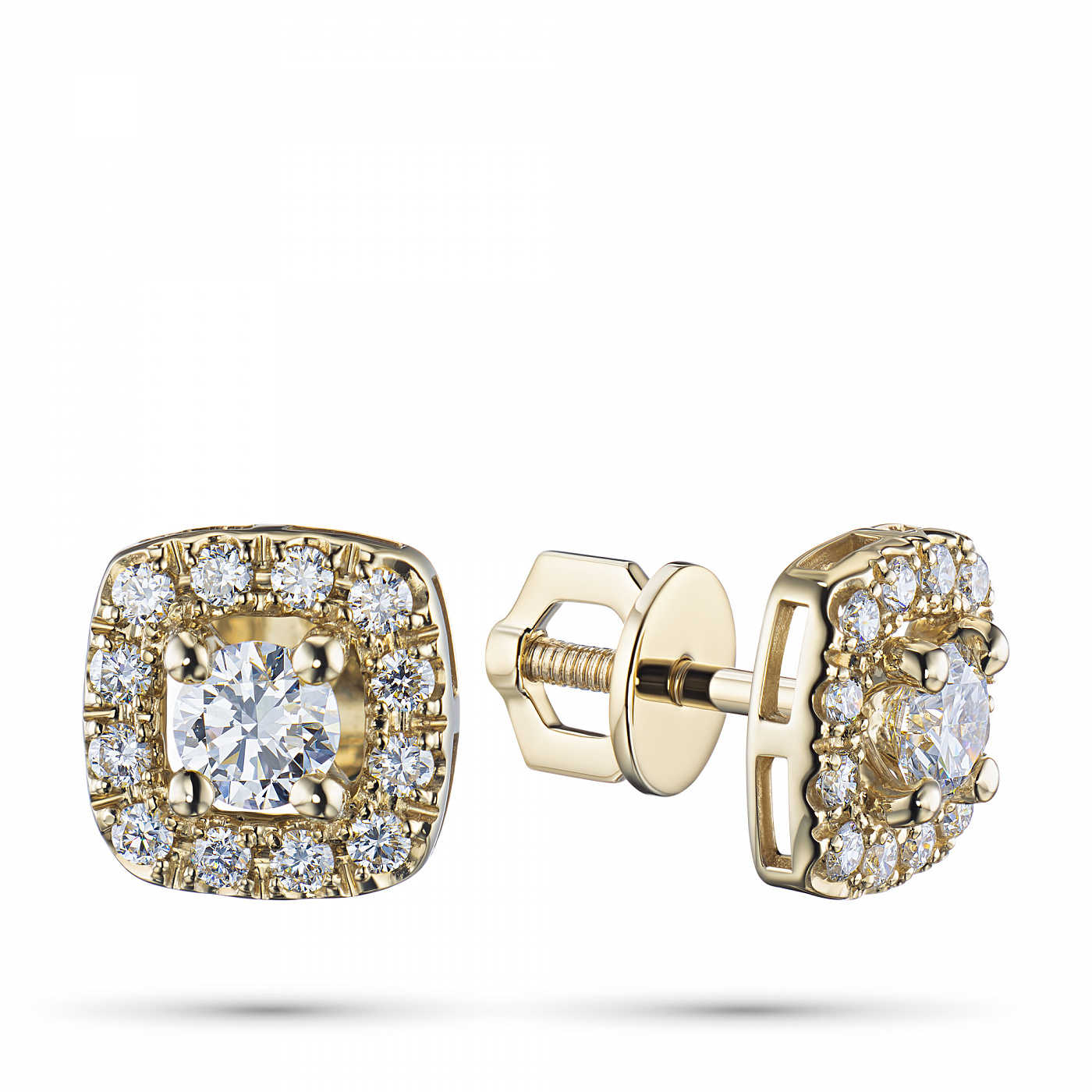 14K Yellow Gold Earring Studs with 26 Round-Cut Lab-Created Diamonds 1.479 CT.TW - an excellent addition to your jewelry collection. Jewelry with natural Diamonds produced at the "EPL". Yellow gold emphasizes the play of light on facets of a diamond, not afraid of water and is suitable for everyday wear. Our goods are sold only in retail showrooms.