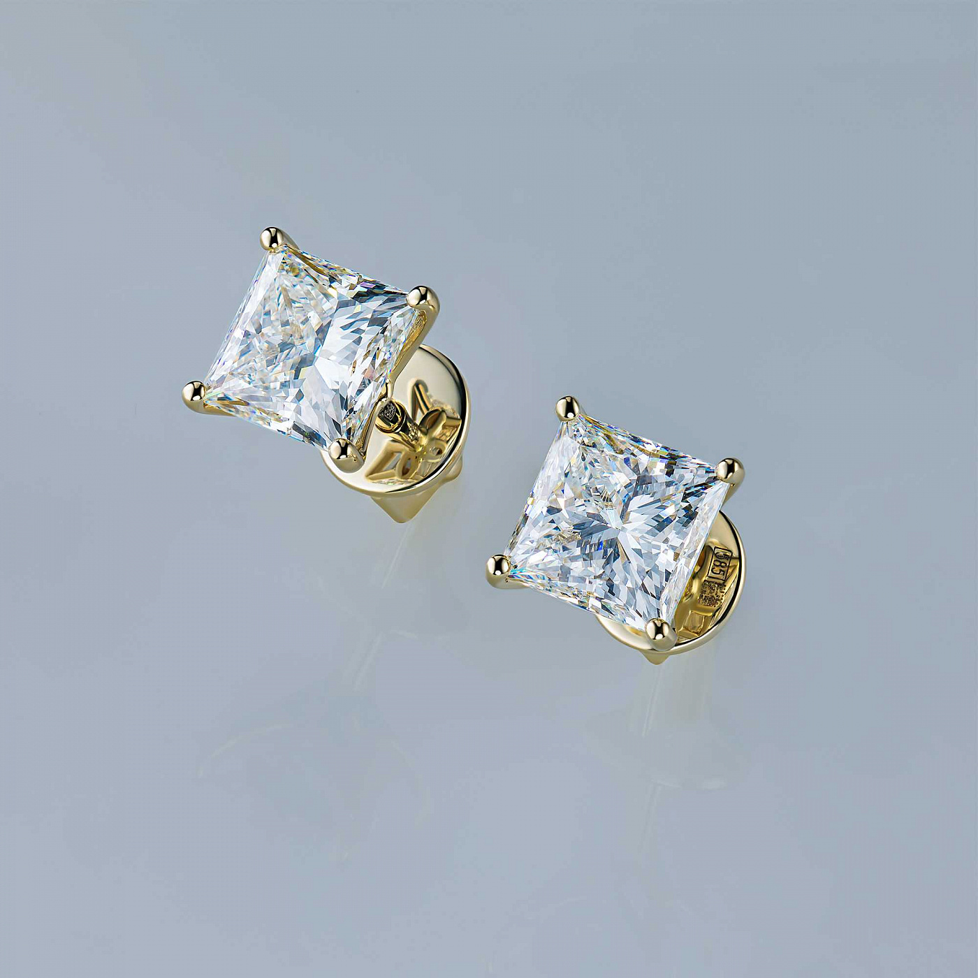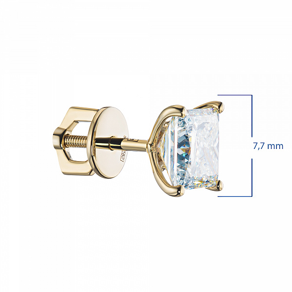 14K Yellow Gold Earring Studs with 2 Princess-Cut Lab-Created Diamonds 2.099 CT.TW - an excellent addition to your jewelry collection. Jewelry with natural Diamonds produced at the "EPL". Yellow gold emphasizes the play of light on facets of a diamond, not afraid of water and is suitable for everyday wear. Our goods are sold only in retail showrooms.