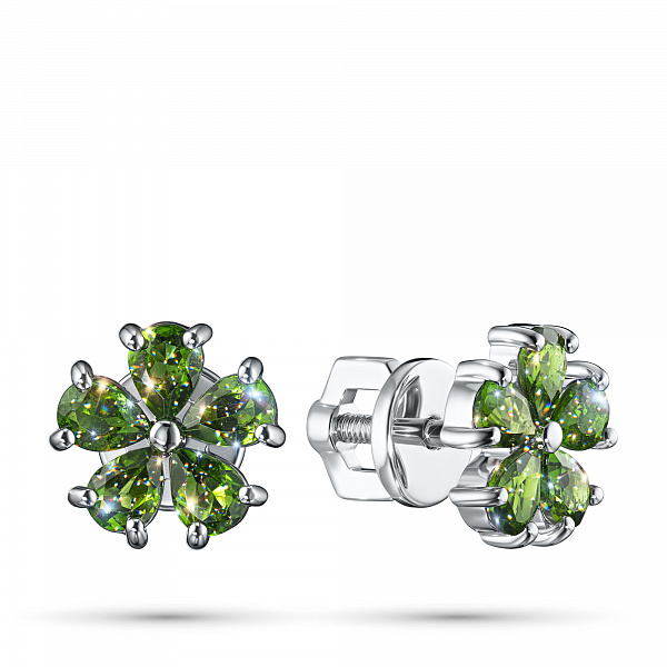 Sterling Silver Earring Studs with 10 Pear-Cut Chromdiopsides 1.616 CT.TW - an excellent addition to your jewelry collection. Jewelry with natural Diamonds produced at the "EPL". Silver emphasizes the play of light on facets of a diamond, not afraid of water and is suitable for everyday wear. Our goods are sold only in retail showrooms.
