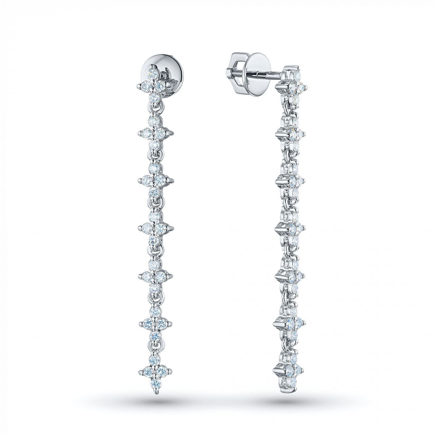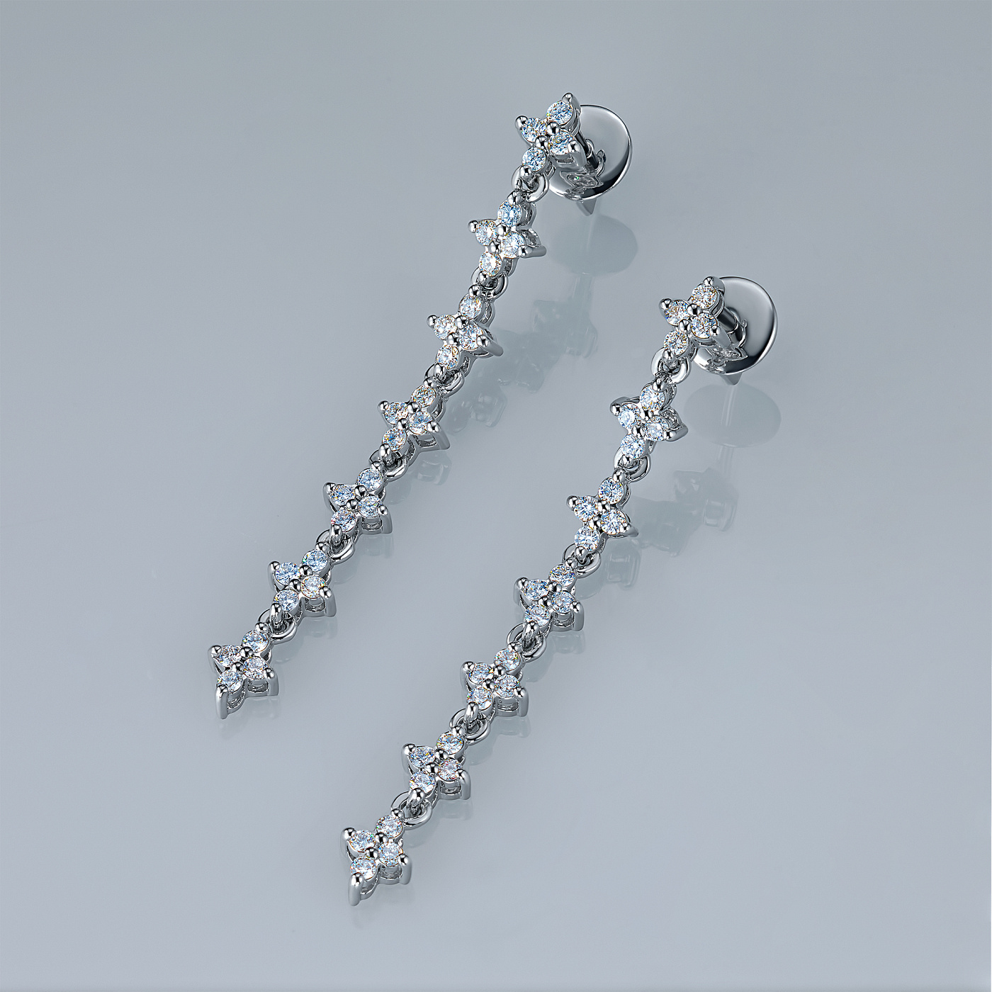 14K White Gold Earring Studs with 56 Round-Cut Lab-Created Diamonds 1.195 CT.TW - an excellent addition to your jewelry collection. Jewelry with natural Diamonds produced at the "EPL". White gold emphasizes the play of light on facets of a diamond, not afraid of water and is suitable for everyday wear. Our goods are sold only in retail showrooms.