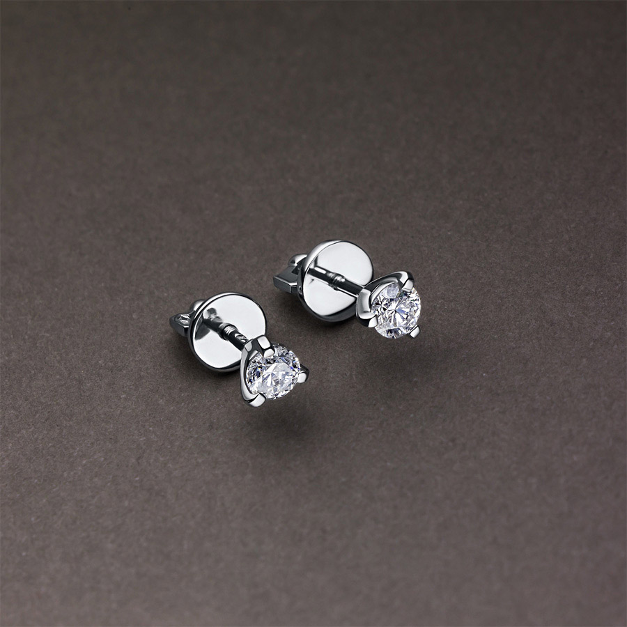 14K White Gold Earring Studs with 2 Round-Cut Lab-Created Diamonds 0.515 CT.TW - an excellent addition to your jewelry collection. Jewelry with natural Diamonds produced at the "EPL". White gold emphasizes the play of light on facets of a diamond, not afraid of water and is suitable for everyday wear. Our goods are sold only in retail showrooms.