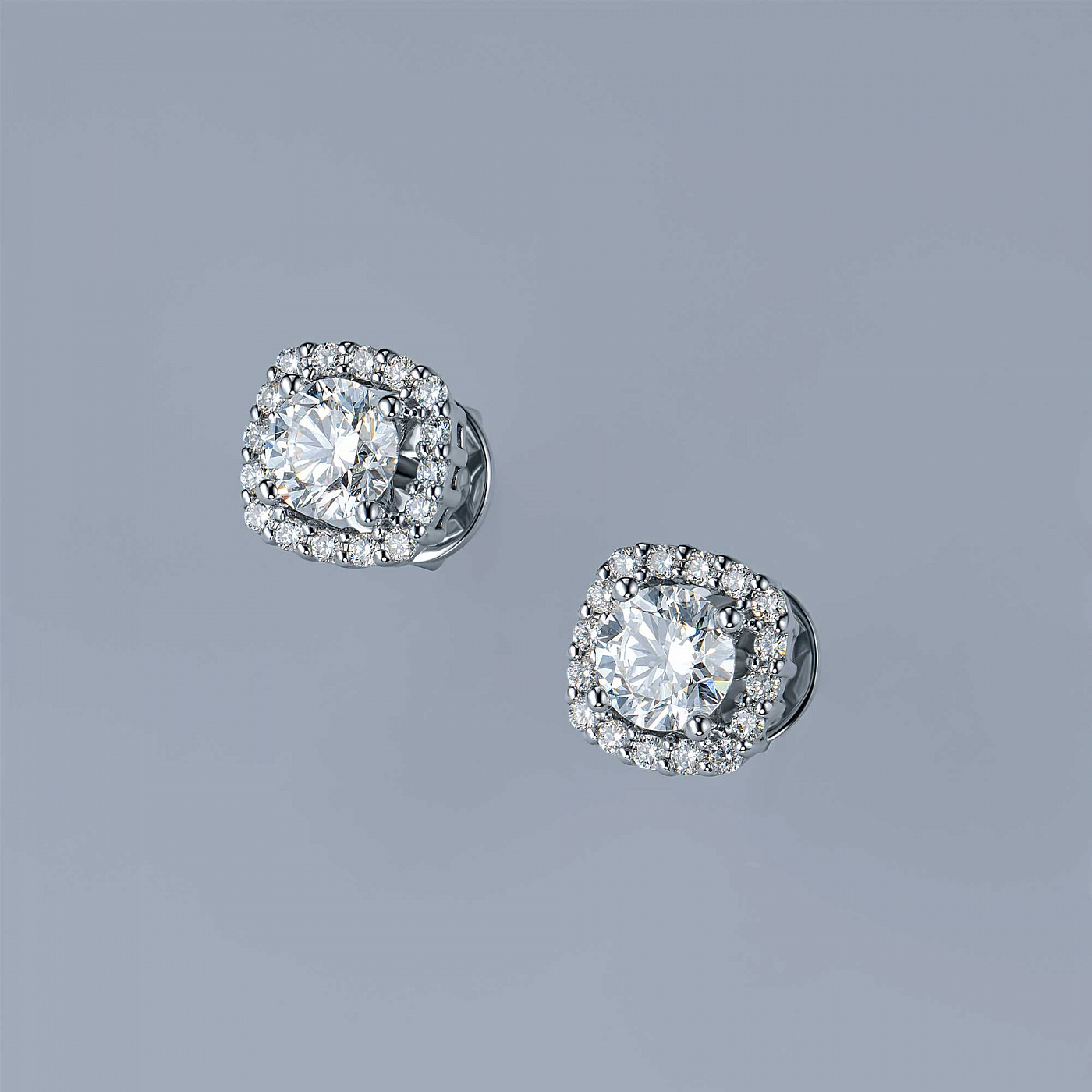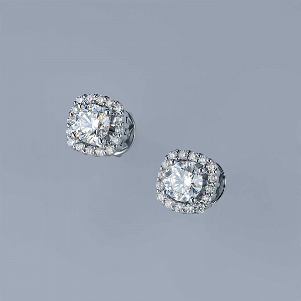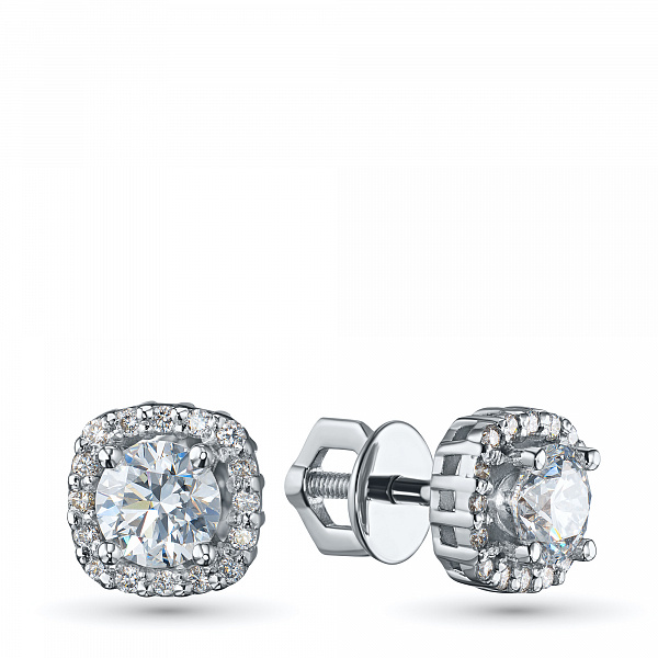 14K White Gold Earring Studs with 34 Round-Cut Lab-Created Diamonds 0.878 CT.TW - an excellent addition to your jewelry collection. Jewelry with natural Diamonds produced at the "EPL". White gold emphasizes the play of light on facets of a diamond, not afraid of water and is suitable for everyday wear. Our goods are sold only in retail showrooms.