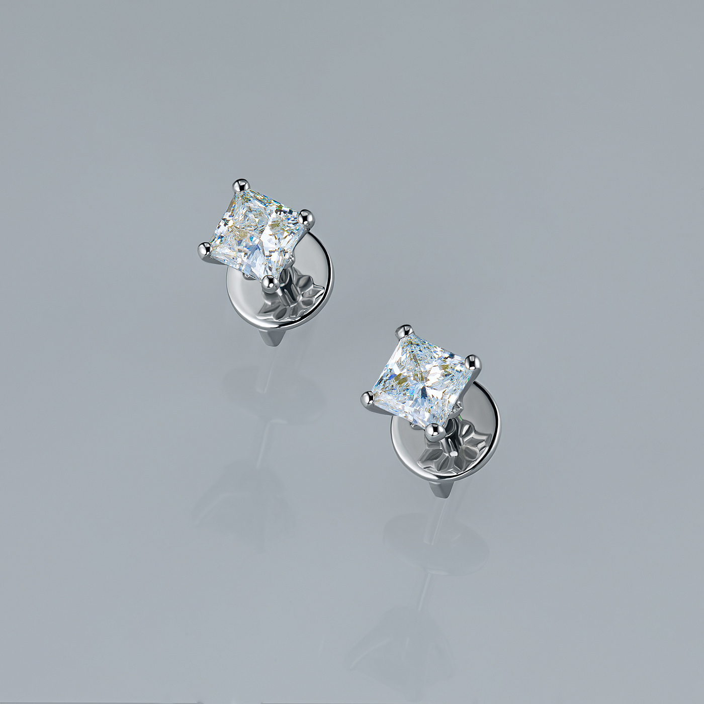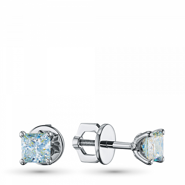14K White Gold Earring Studs with 2 Princess-Cut Lab-Created Diamonds 1.035 CT.TW - an excellent addition to your jewelry collection. Jewelry with natural Diamonds produced at the "EPL". White gold emphasizes the play of light on facets of a diamond, not afraid of water and is suitable for everyday wear. Our goods are sold only in retail showrooms.