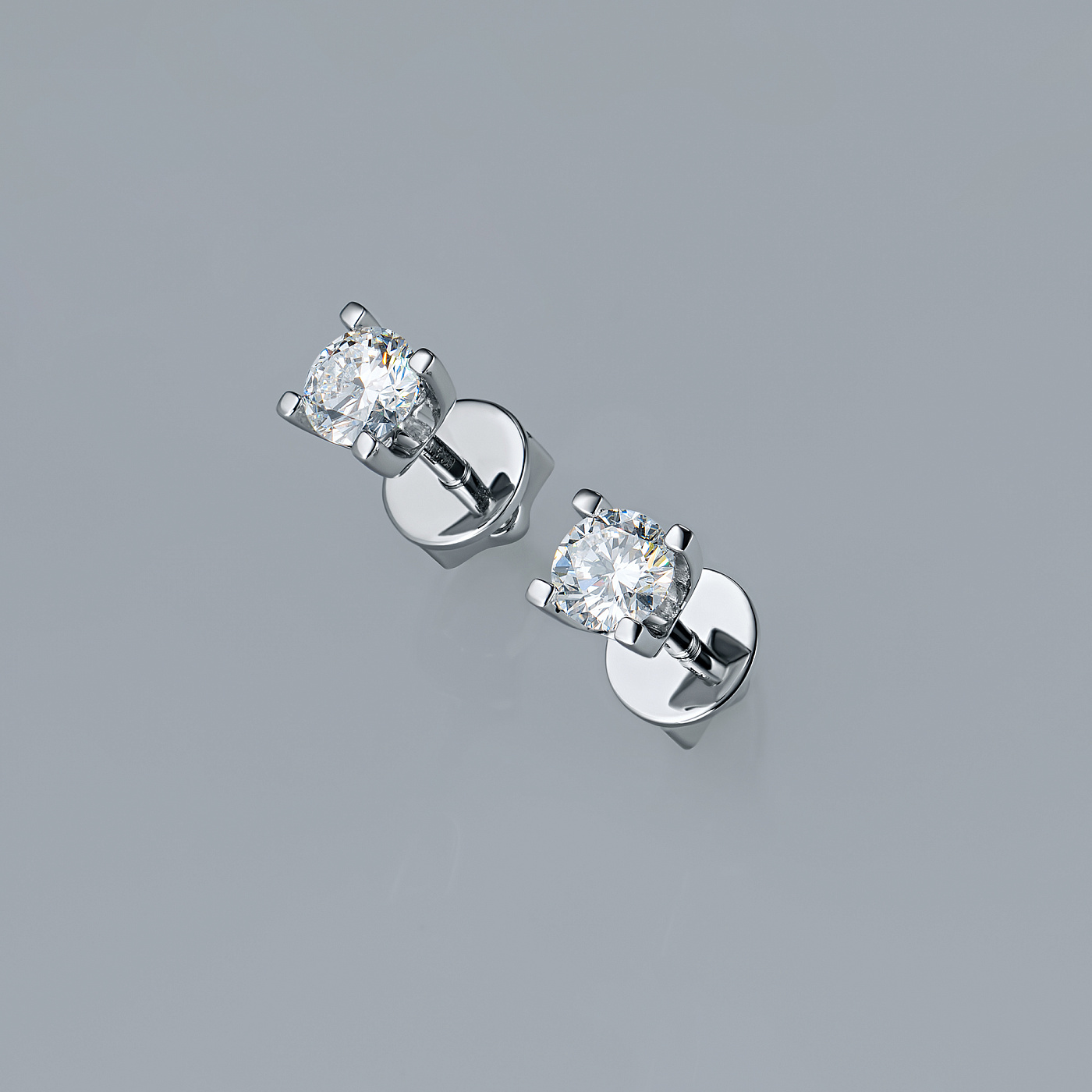 14K White Gold Earring Studs with 2 Round-Cut Lab-Created Diamonds 0.697 CT.TW - an excellent addition to your jewelry collection. Jewelry with natural Diamonds produced at the "EPL". White gold emphasizes the play of light on facets of a diamond, not afraid of water and is suitable for everyday wear. Our goods are sold only in retail showrooms.