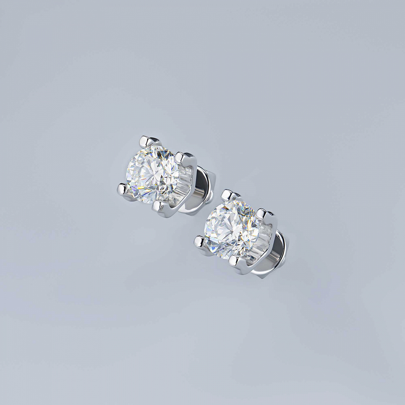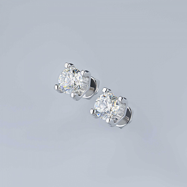 14K White Gold Earring Studs with 2 Round-Cut Lab-Created Diamonds 0.697 CT.TW - an excellent addition to your jewelry collection. Jewelry with natural Diamonds produced at the "EPL". White gold emphasizes the play of light on facets of a diamond, not afraid of water and is suitable for everyday wear. Our goods are sold only in retail showrooms.