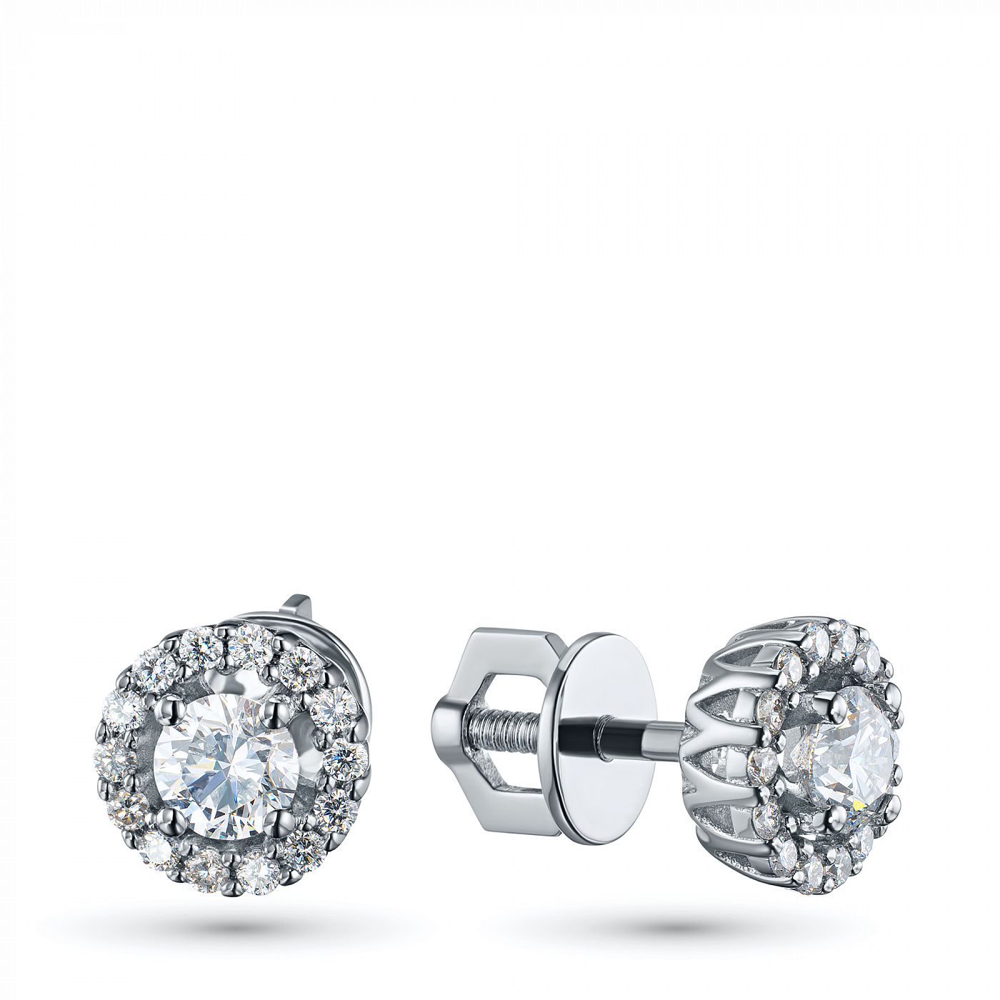 14K White Gold Earring Studs with 30 Round-Cut Lab-Created Diamonds 1.507 CT.TW - an excellent addition to your jewelry collection. Jewelry with natural Diamonds produced at the "EPL". White gold emphasizes the play of light on facets of a diamond, not afraid of water and is suitable for everyday wear. Our goods are sold only in retail showrooms.